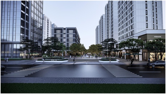 富林城道以居住+商业为主,植入办公及企业服务功能的复合共享街区,融合餐饮、休闲、娱乐、健身及金融服务为一体的全方位综合商业街区,同时考虑与未来东地块商业有机联动、交互延续。