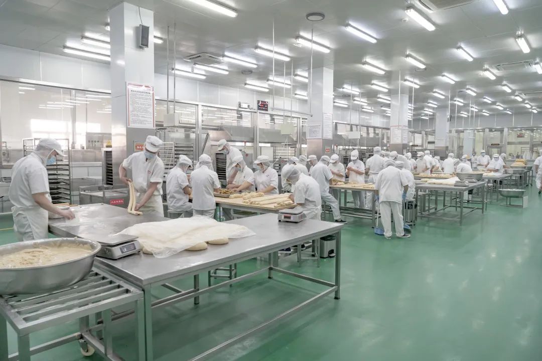 通过手工艺制作团队精湛出品后置于自动化设备上,一个个形状统一、圆润饱满的月饼雏形诞生眼前。