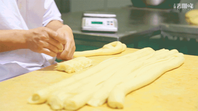 面皮则是使用到一级压榨花生油、面粉反复加入净化水搓制而成。其秘诀在于反复揉捏、反复醒面!采用具有龙华古寺传统特色的醒发工艺,醒发后的面团要擀平、卷起,如此反复。