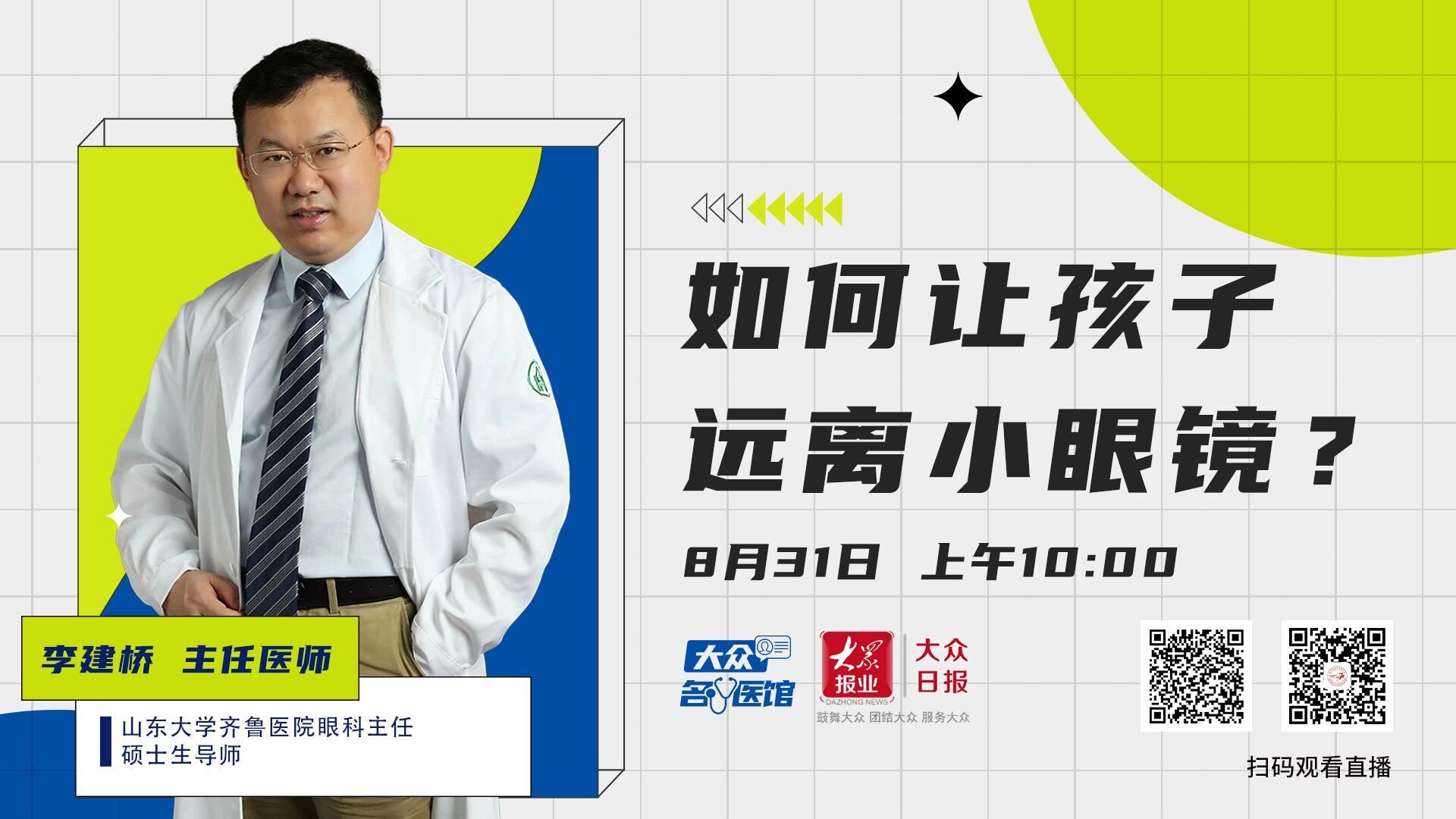 8月31日上午10点,山东大学齐鲁医院眼科主任李建桥做客《大众名医馆》,揭晓答案。