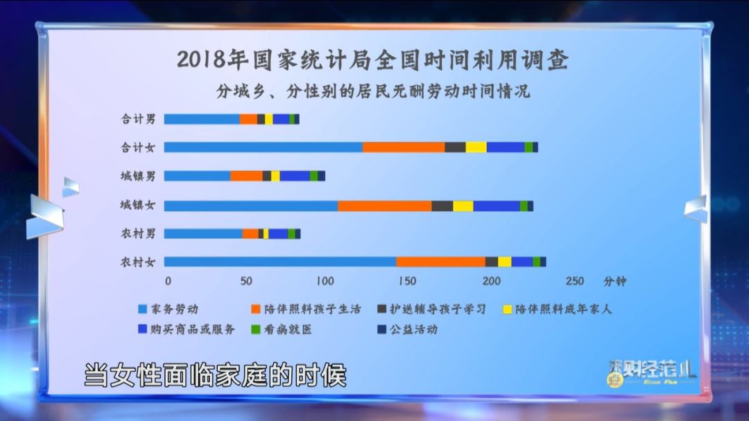 数据显示,中国女性的无酬劳动时间是男性的两倍多,她们等于打了两份工!听听“学姐们”怎么分析这些数据。