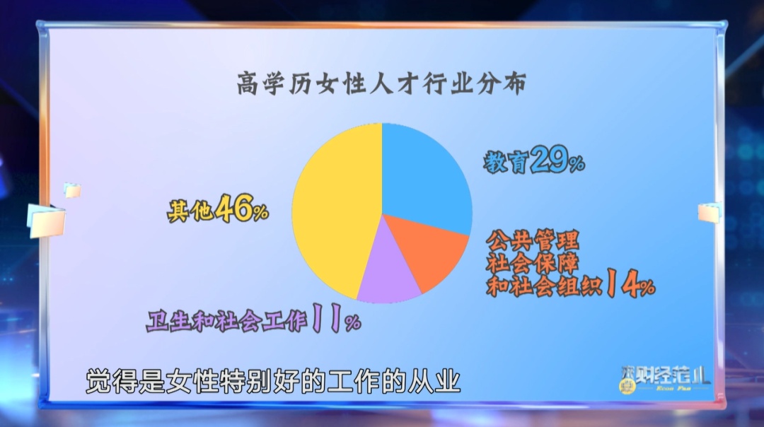 2、从就业分布看,我国高学历女性人才主要集中在三大行业:教育(29%);公共管理、社会保障和社会组织(14%);卫生和社会工作(11%)。这三个行业加起来占了女性高学历人才的54%。