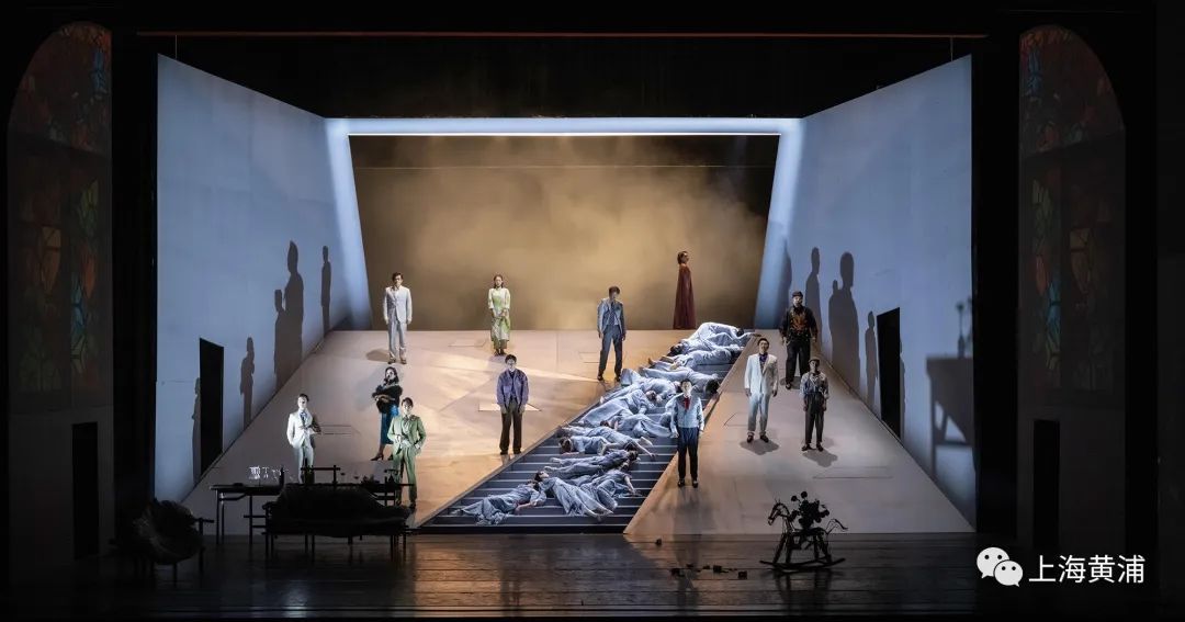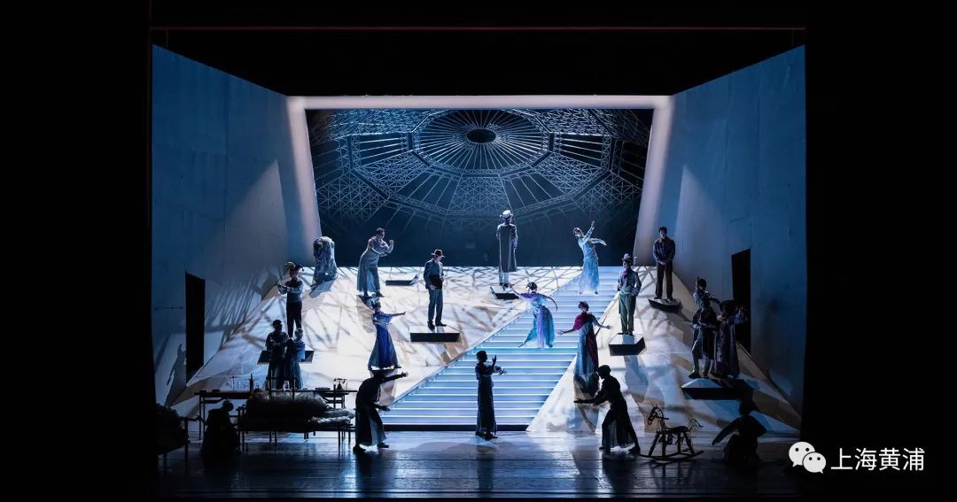 舞台剧《日出》的舞美设计整体呈现出一种大写意的简约手笔。舞台上最为醒目的当属巨大的斜坡,一道向远处延伸的阶梯将坡面一分为二。“人生就像这道斜坡,有的人一直往下走,有的人往上爬,也有人从来没有站在楼梯上过,我用这样区域化的舞台来表现剧中每个人在不同阶层的艰难求存的境况。”金星这样介绍说。