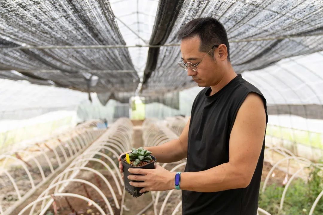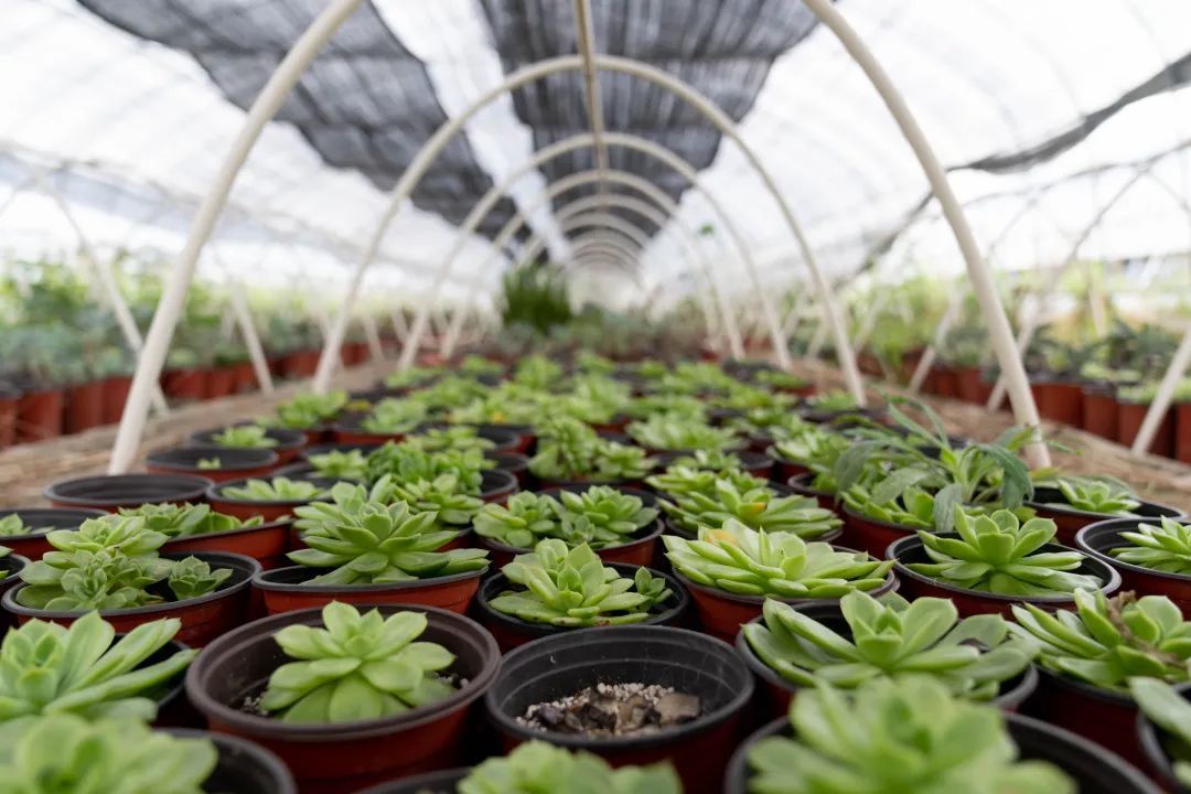 走进“多肉”基地,育苗大棚里整整齐齐、造型各异的“多肉”一字排开,肉嘟嘟的叶片、小巧的身形,“萌”感十足。这些姿态万千的“多肉”,通过精心筛选的“父本和母本”进行培育,并贴上了专属标签,基地负责人蔡丁华正忙着给“多肉”浇水。