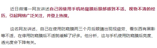 “防窥膜 伤眼睛”登上了微博热搜