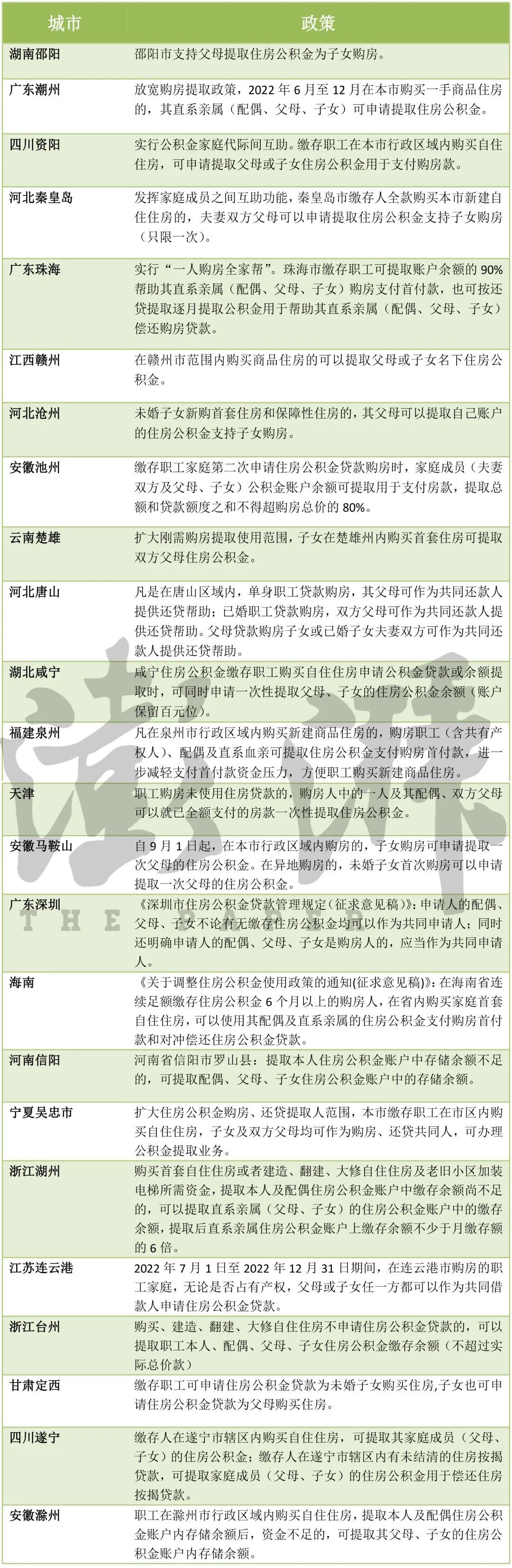 另以河南信阳为例,9月1日,河南省信阳市罗山县发布的《罗山县人民政府办公室关于印发罗山县促进房地产市场平稳健康发展若干措施(试行)的通知》则显示,提取本人住房公积金账户中存储余额不足的,可提取配偶、父母、子女住房公积金账户中的存储余额。
