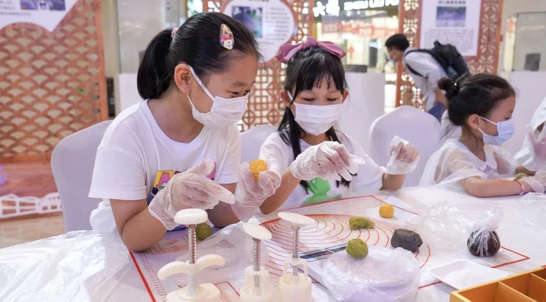“小朋友们,这是我们今天的月饼模具,它是汉代月神图的图案。”记者在现场看到,十多名小朋友戴起手套,在面点师的指导下制作月饼。灰色的饼皮,配以汉代月神图的古典图案,颇有砖石的厚重感。