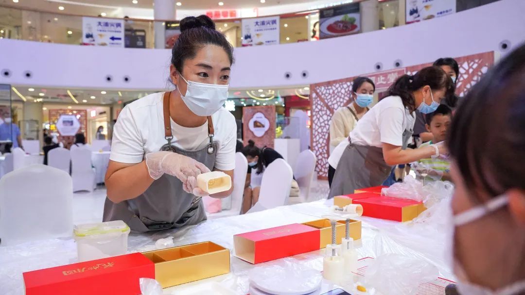 孩子们小心翼翼地给制作完成的月饼包上防油纸,放入印有“花好月圆”的包装盒,迫不及待地与家人分享这份节日的甜蜜。“第一次体验自己做月饼,很有成就感,非常有趣。”小朋友余周芊沺说。