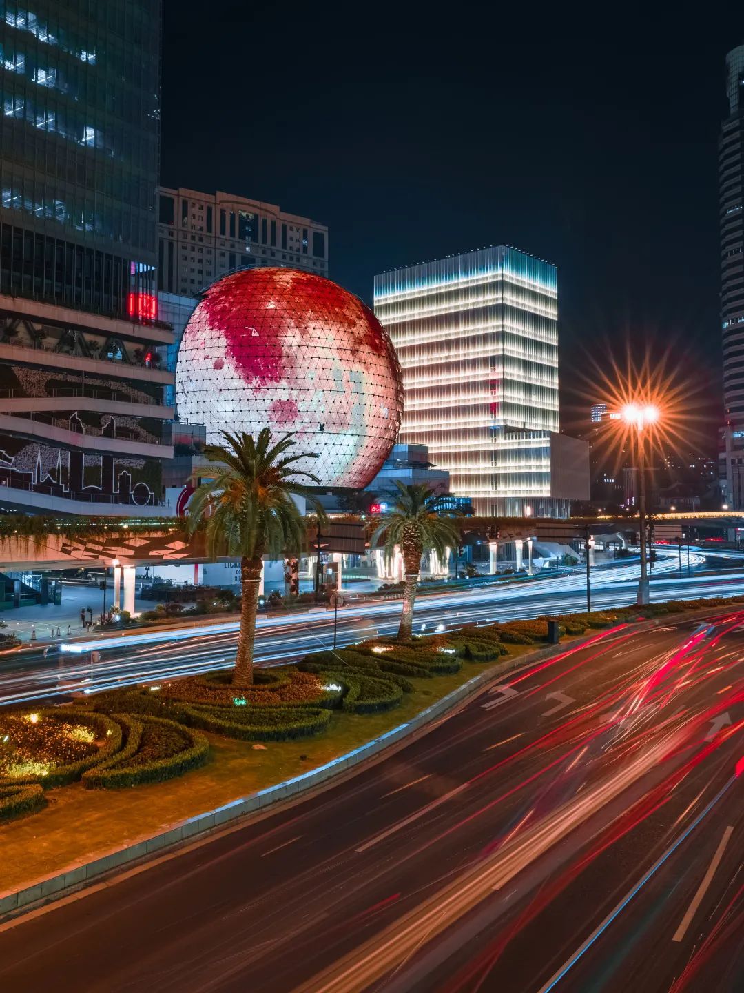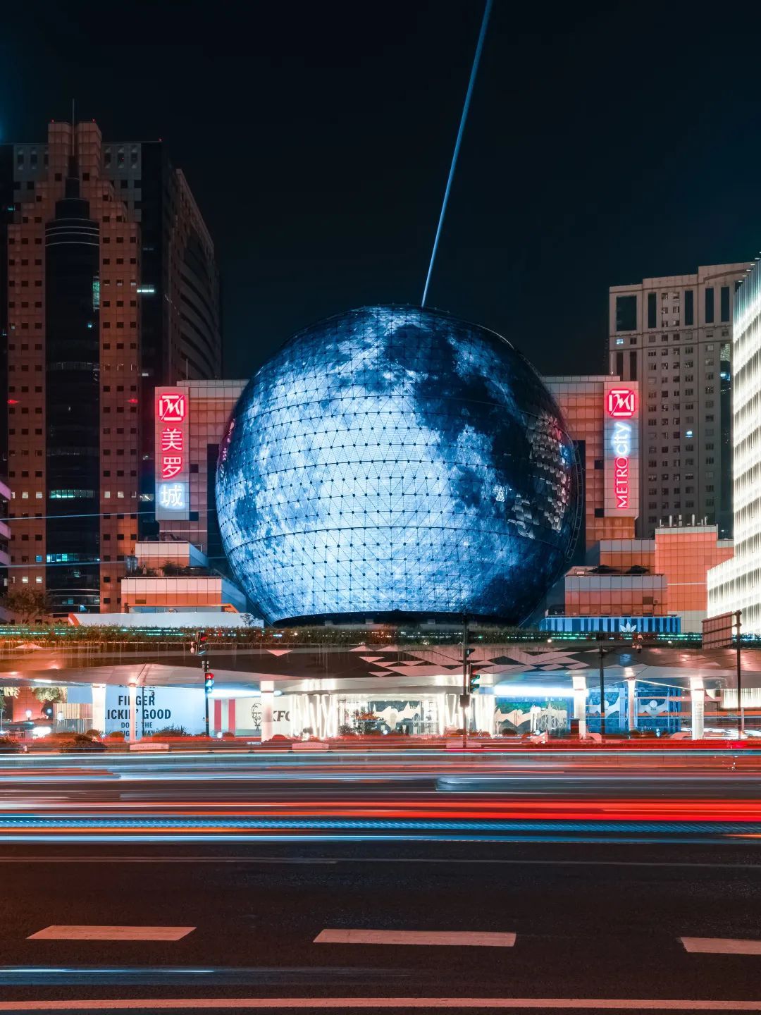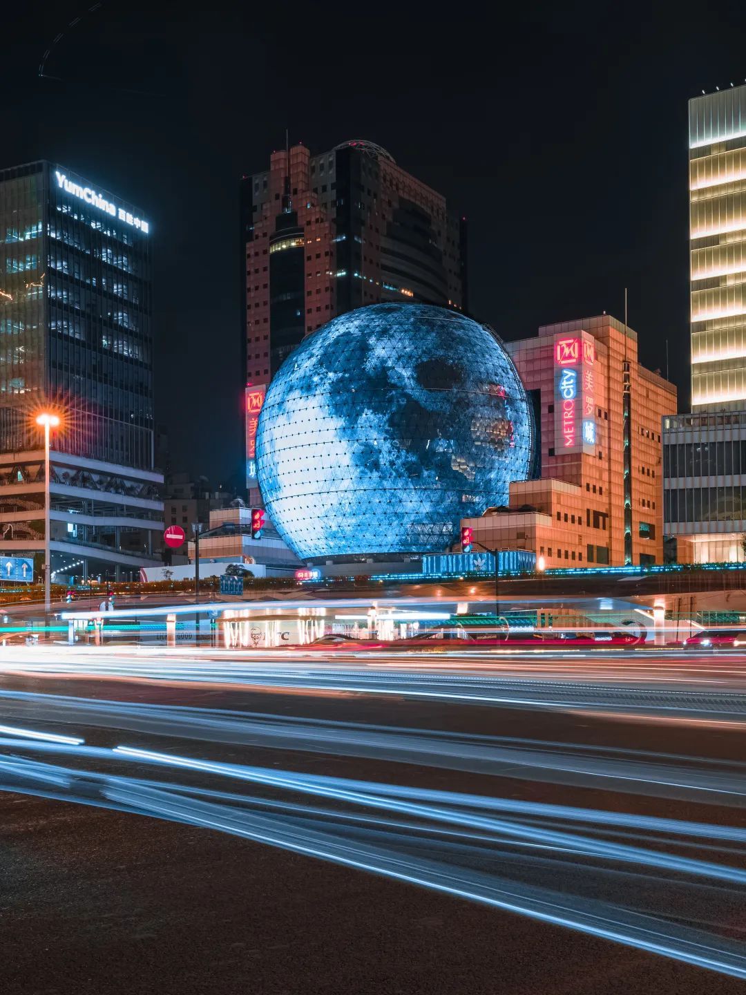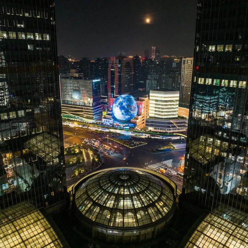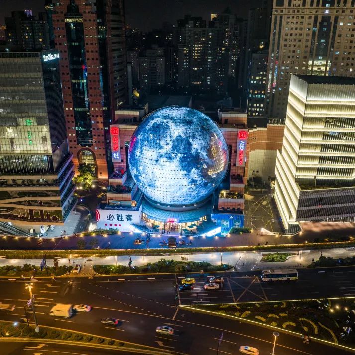这两天夜晚,路过徐家汇的小伙伴都会被一幕奇观所震撼。在熙熙攘攘的徐家汇商圈,地标性建筑美罗球化身一枚巨型月球,点亮城市夜空。为夜游商圈来往市民平添一份节日的浪漫气息。