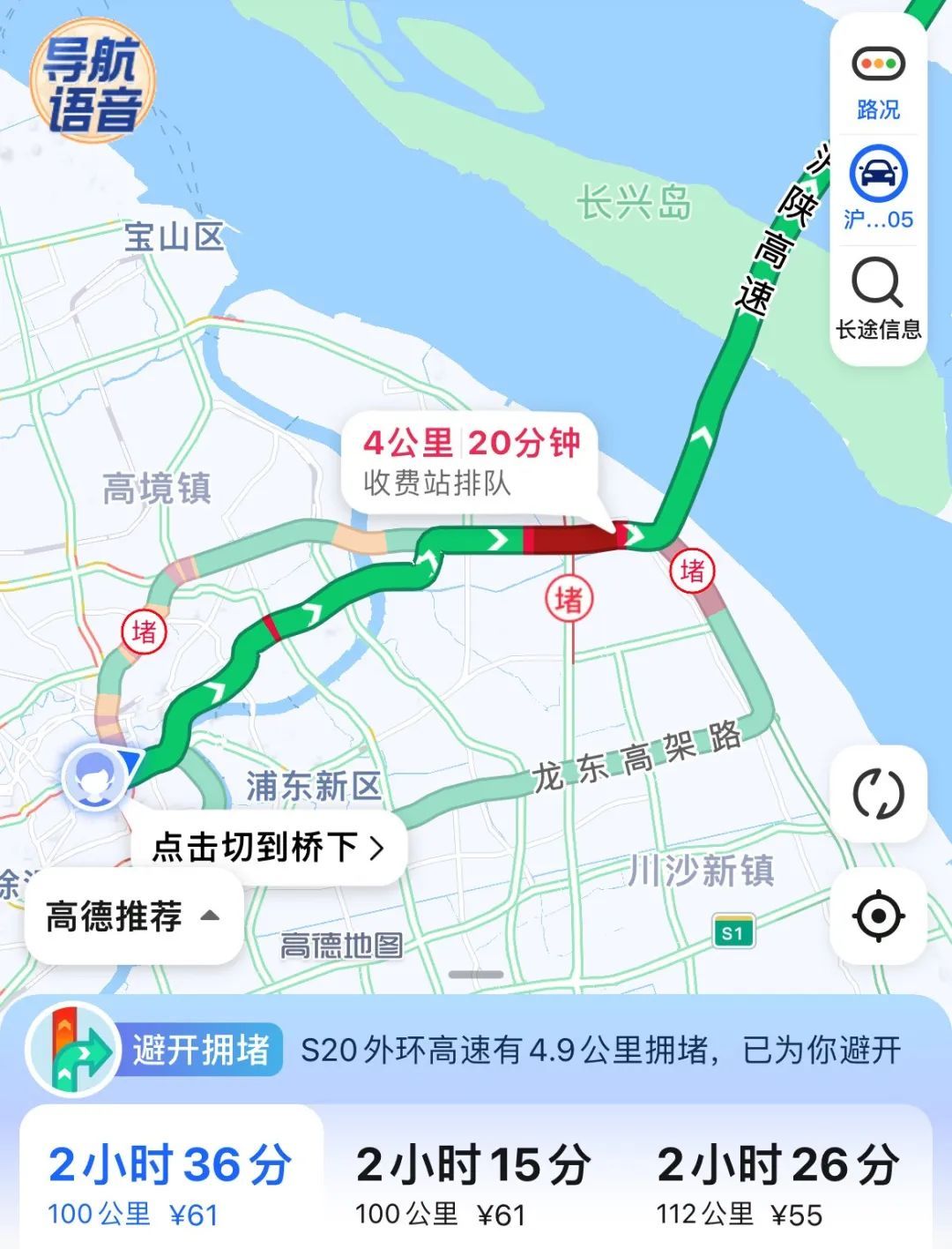 看看假期第一天早上市区通往崇明的"猪肝红"