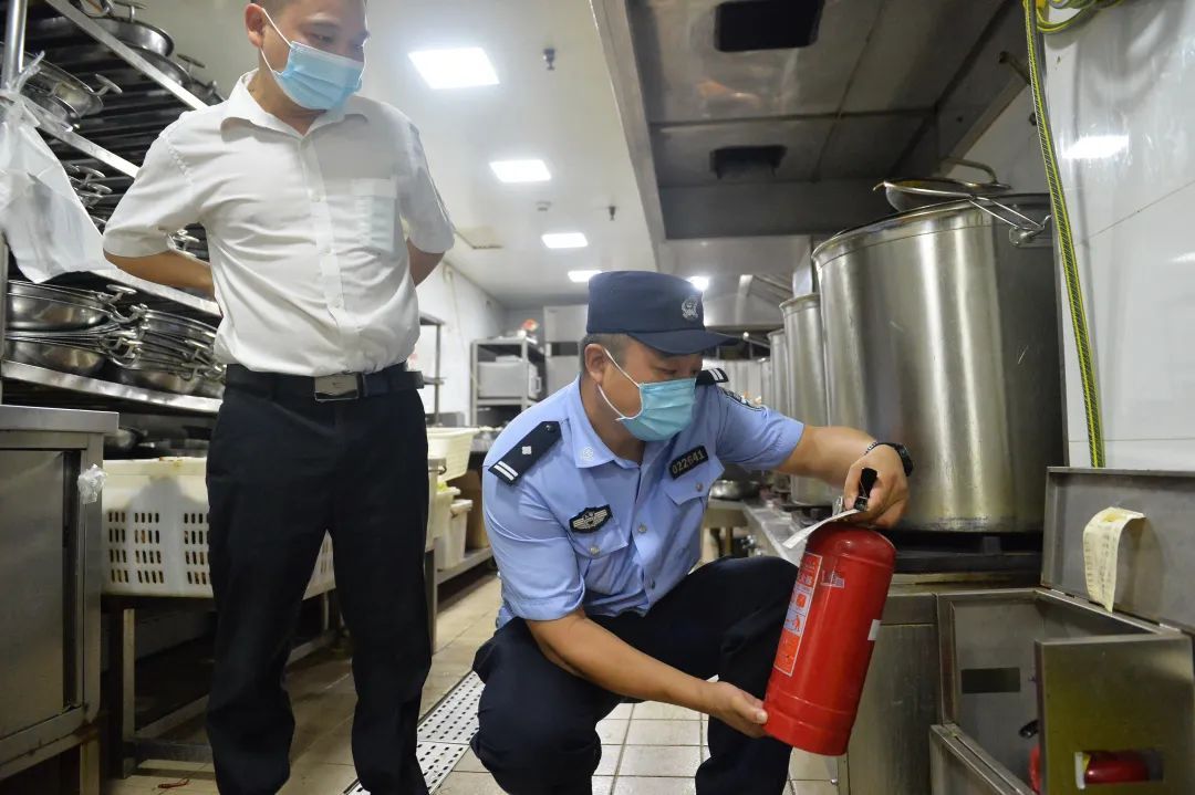 民警检查餐饮场所、危化品仓库安全