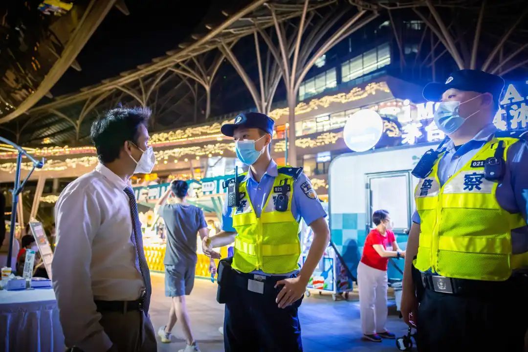 在徐汇滨江区域,由于气温适宜,外出游玩、健身的市民络绎不绝,但小长假首日人流量基本保持在四成左右,当日累计客流达到1.5万余人次。属地西岸治安派出所充分依托大客流预警系统,加强对重点区域的人流检测,一旦达到峰值,及时采取限流、分流措施。围绕“五五购物节”,西岸艺术中心B馆正在举办为期一周的“全球新品首发季新品秀”活动,徐汇公安分局治安支队、西岸治安派出所在前期对接好区商务委、卫健委,细化审查安保方案,每天派员到场协助维持秩序,确保馆内实时人数不超过防疫安全上限。而在西岸凤巢商场的广场上,琳琅满目的商品和食品摊位组成的“五五购物节”西岸夜市颇具烟火气,民警提前对商户用电用火安全开展了检查和提醒,并在现场巡查隐患,开展宣传,服务群众。