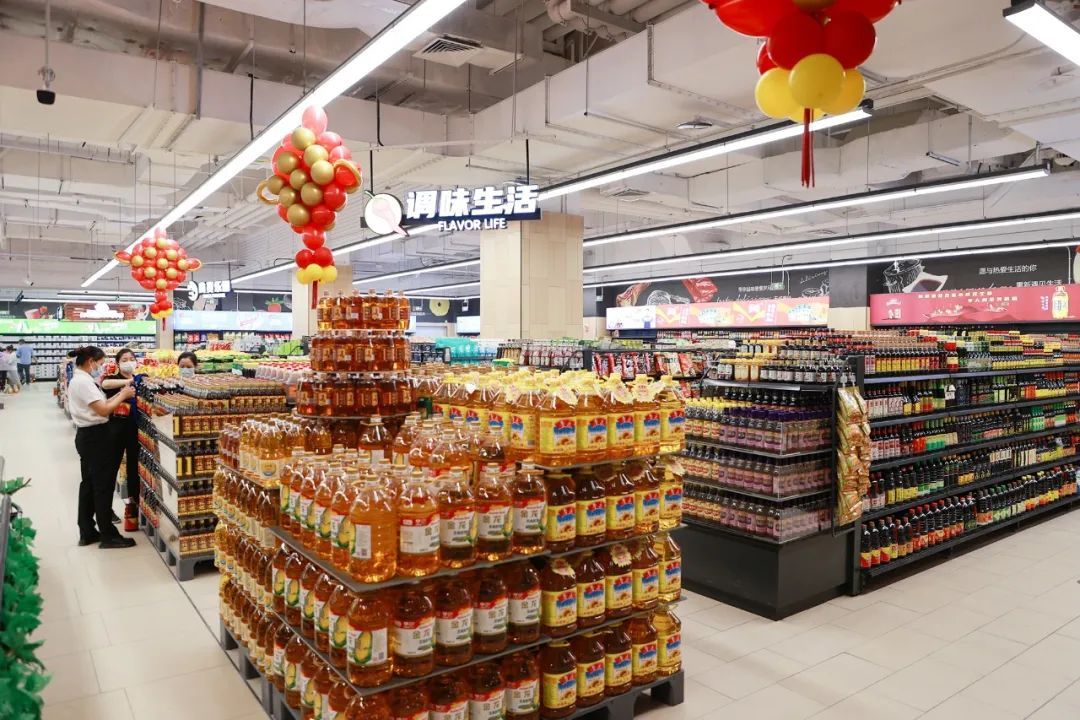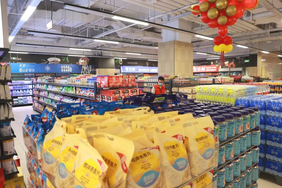在B1层的永辉超市,工作人员们正在忙碌地盘点整理,除了生鲜水果这些不易保存的商品,其他产品基本都已整齐地摆放在货架上。