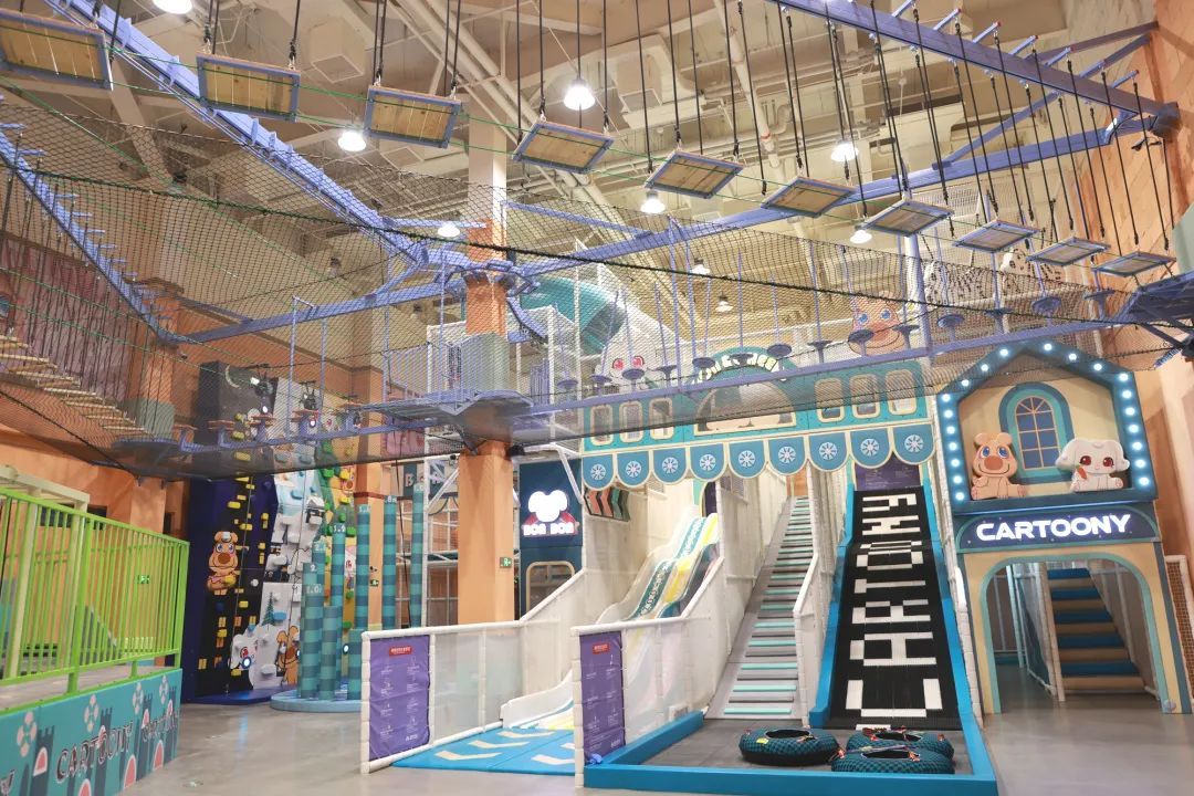 3楼儿童相关业态也是一大亮点,整层都属于亲子娱乐互动空间。挑空高达十米的大型儿童娱乐空间卡通尼乐园,全国首店——棒恰恰露营趣,以及爱婴室、巴拉巴拉、浪花亲亲等品牌,住在周边的家长们以后不用愁带小朋友去哪玩了。
