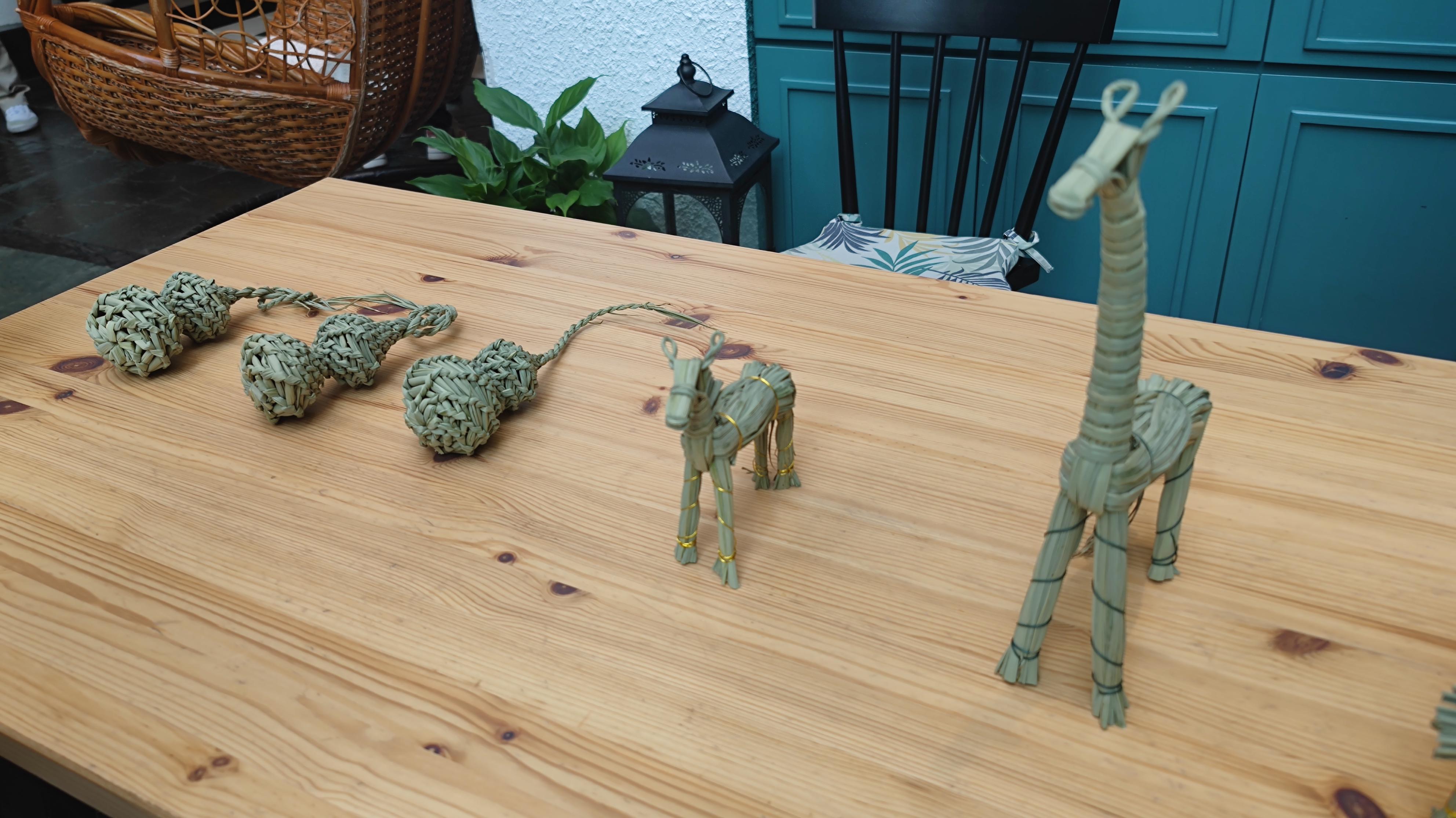 一旁的茭白叶编结体验显然更受孩子们的欢迎。传承人阿婆手把手教孩子们编结茭白叶,边教边告诉孩子们:茭白好吃,茭白叶却难降解,而聪明的练塘人变废为宝,将枯叶被编成吉祥物、草鞋、杯垫等精美的手工艺品,这是练塘人勤劳的智慧。手指翻飞间,故事讲完,孩子们的作品也跃然桌上。