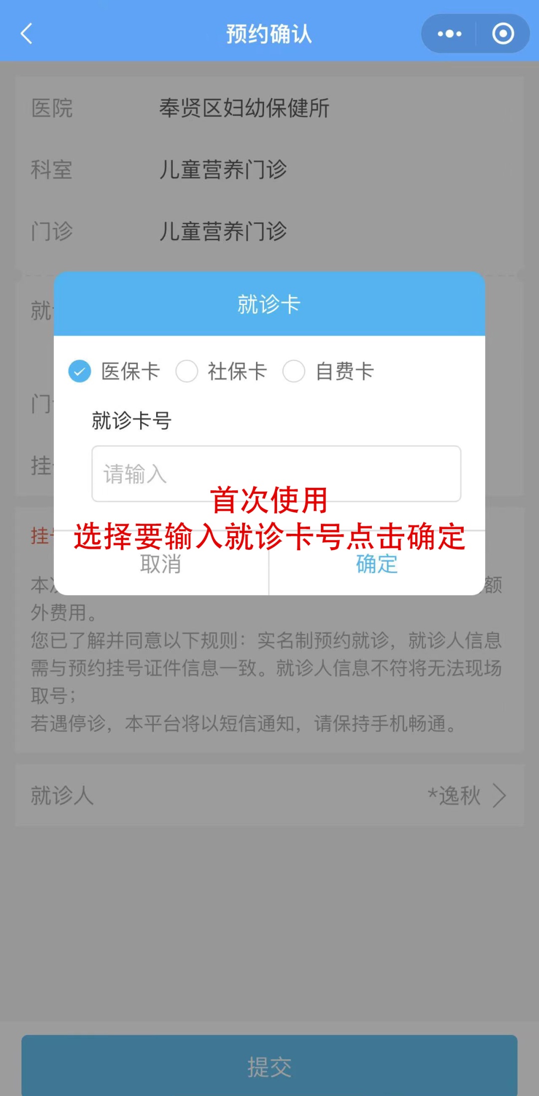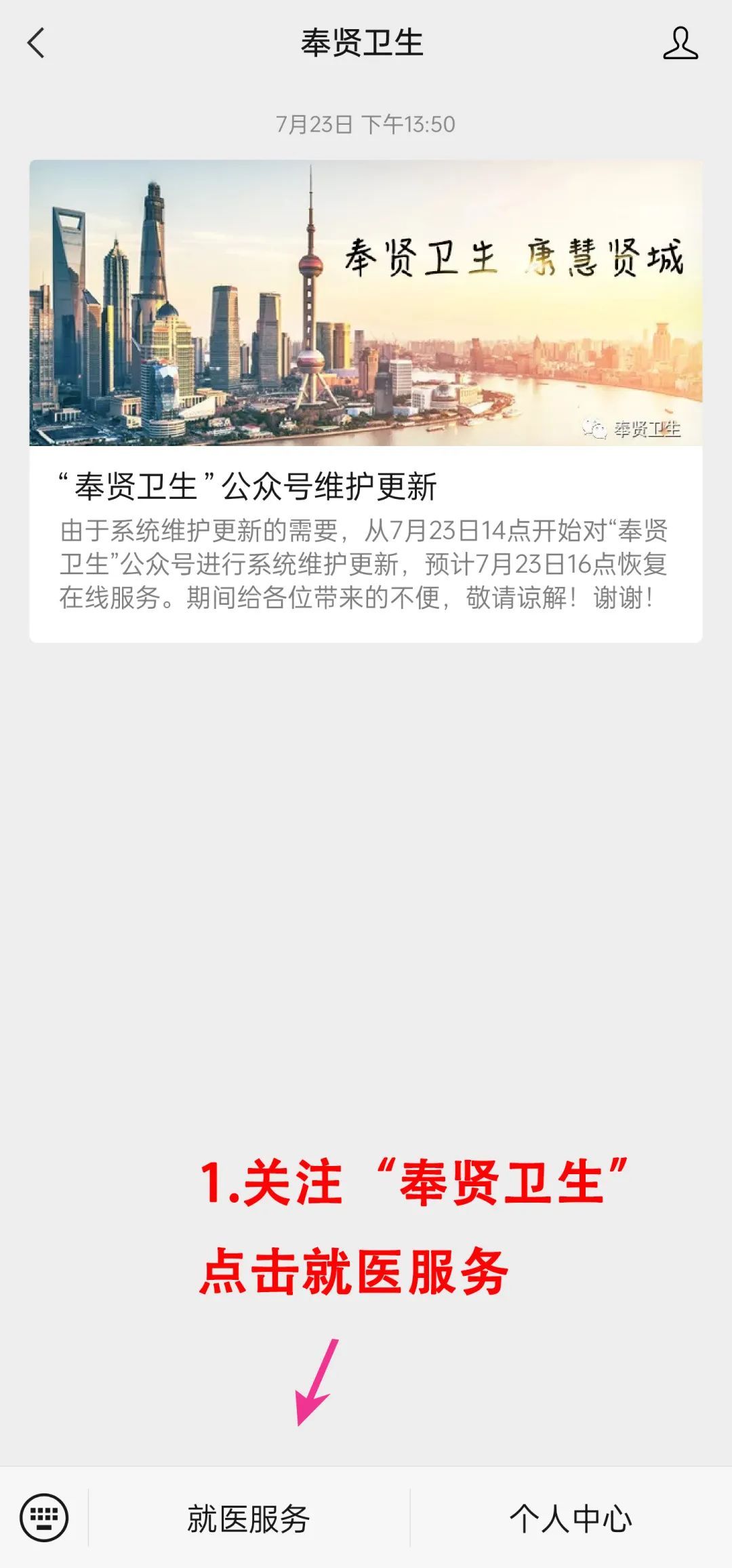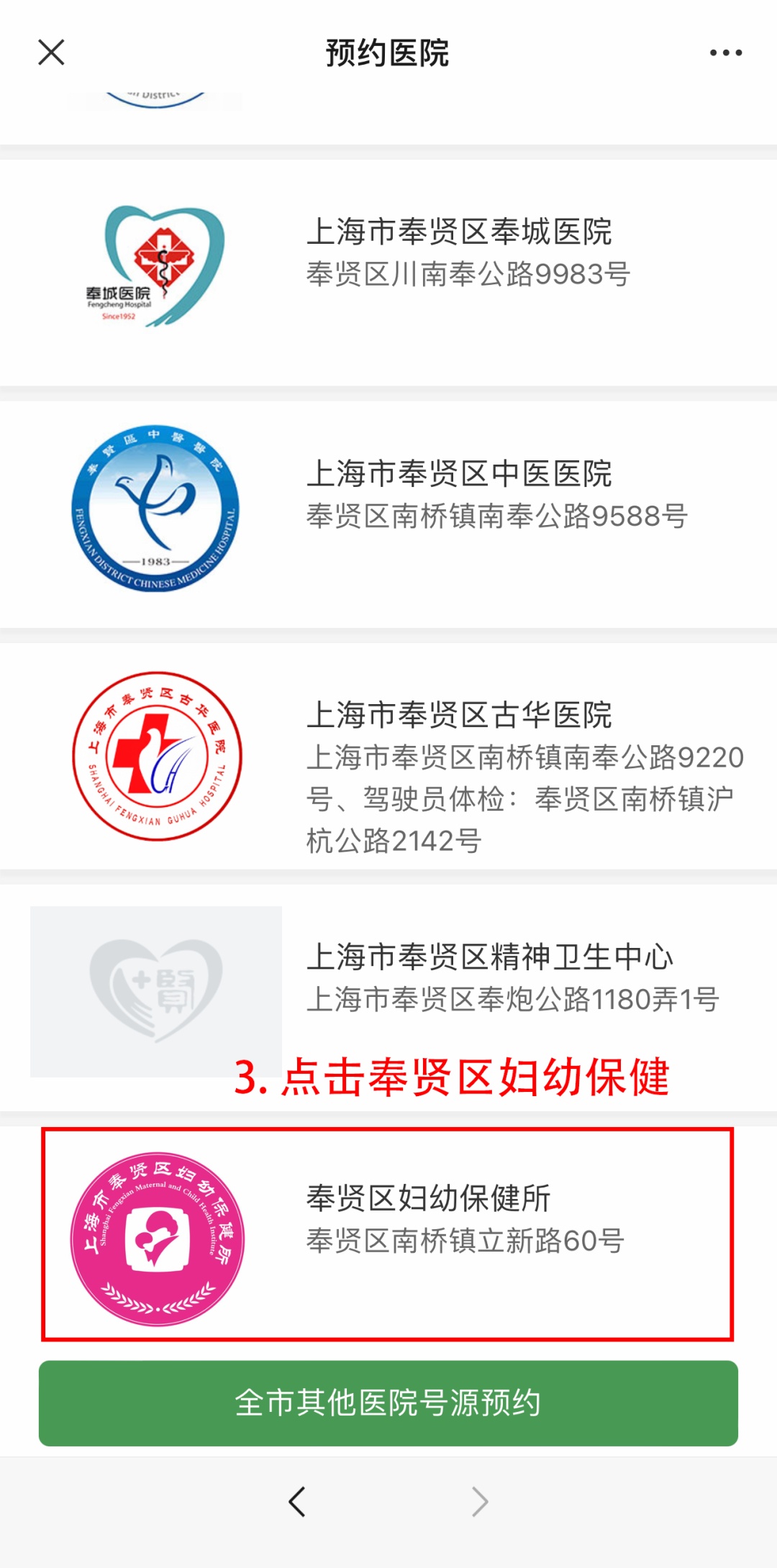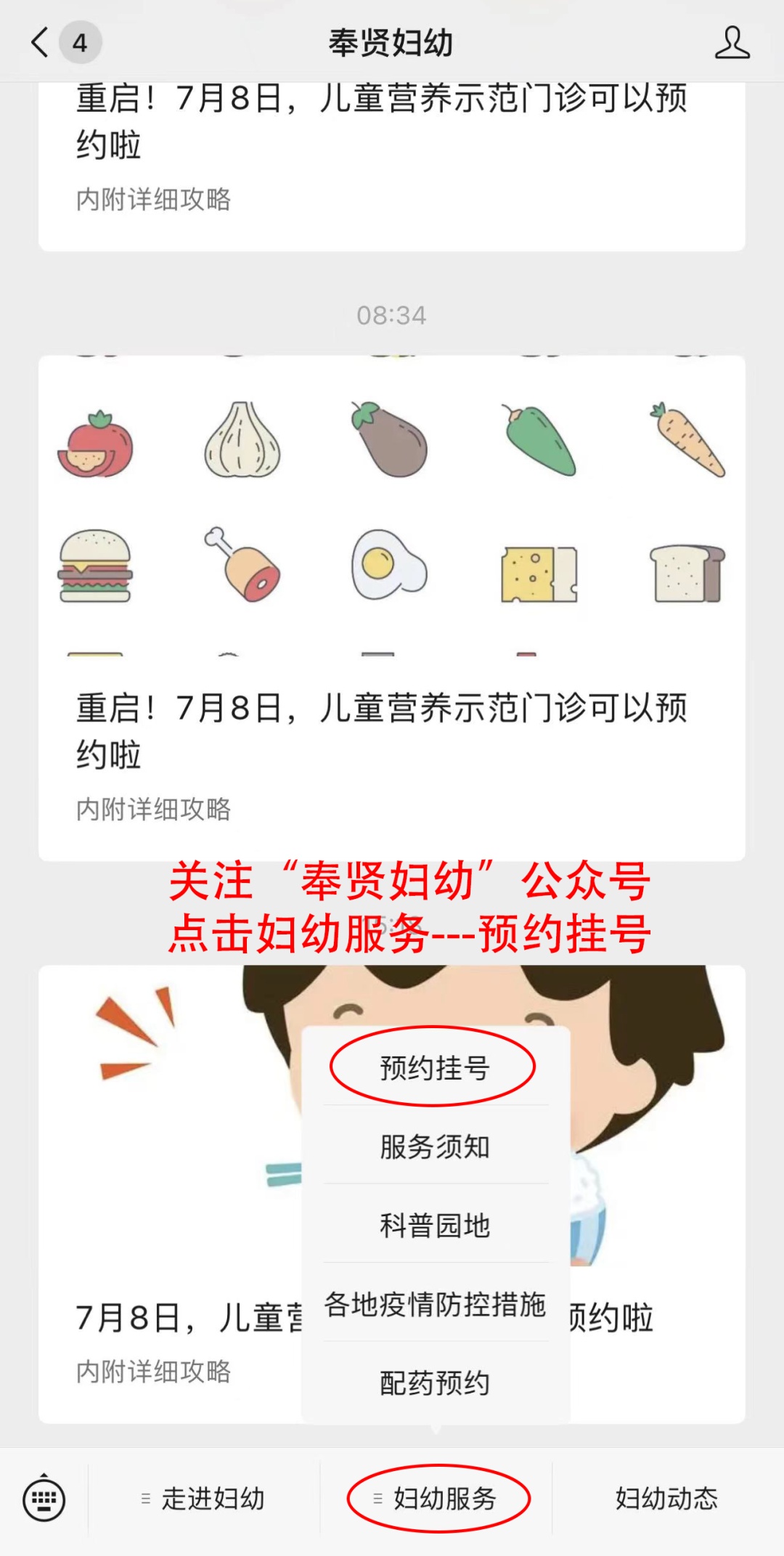 关注“奉贤妇幼“进行预约
