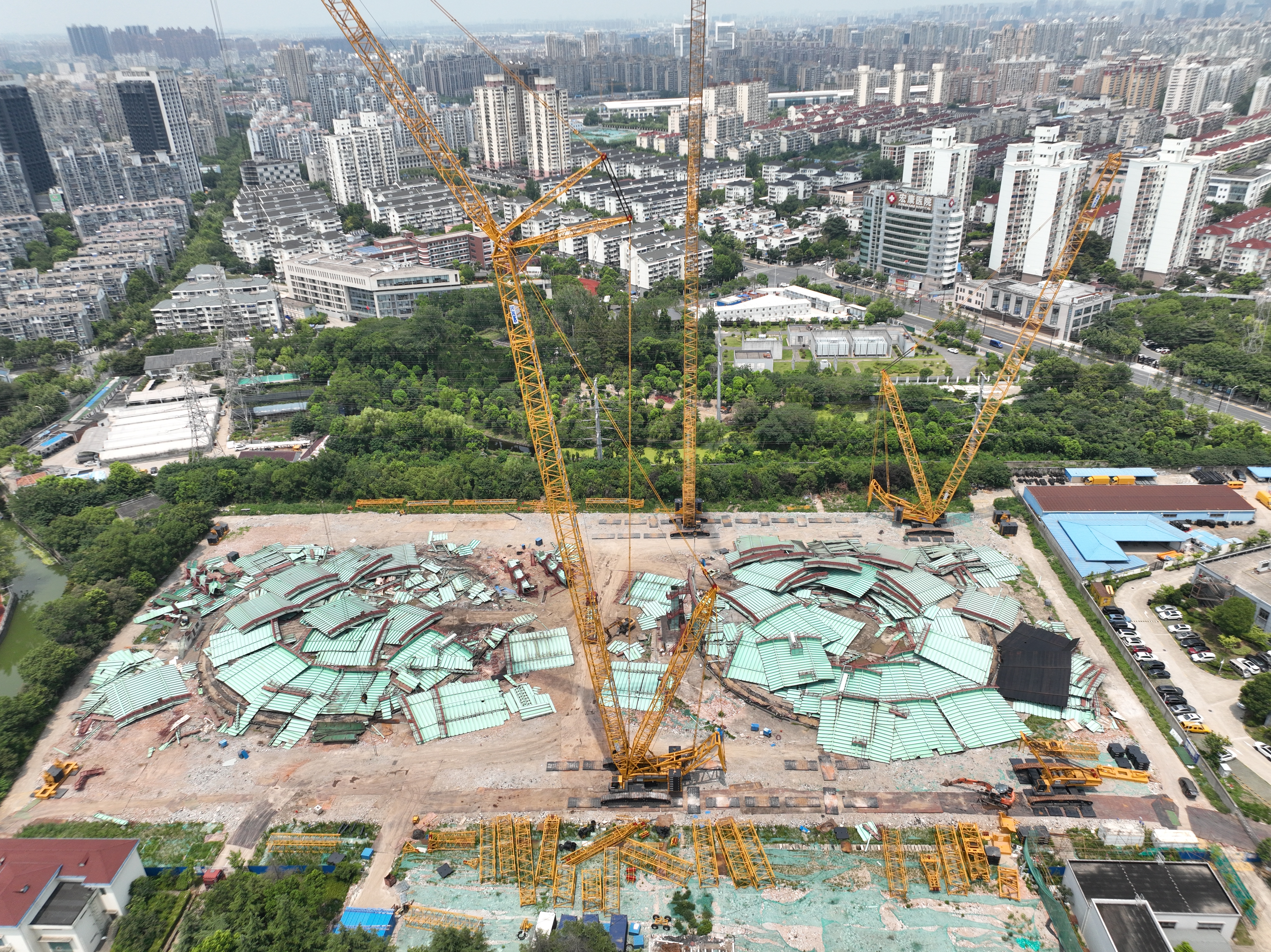 “家门口的两个‘绿罐头’拆掉啦,推开窗的感觉不要太好哦。”家住绿洲公寓高楼里的周阿姨,看着窗外一墙之隔的大渡河路煤气包拆除工程现场,感叹着原先挡住窗口的两座亚洲最大干式气柜终于“消失”在城市发展的步伐中。
