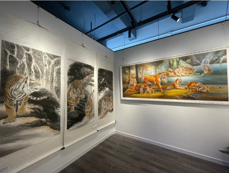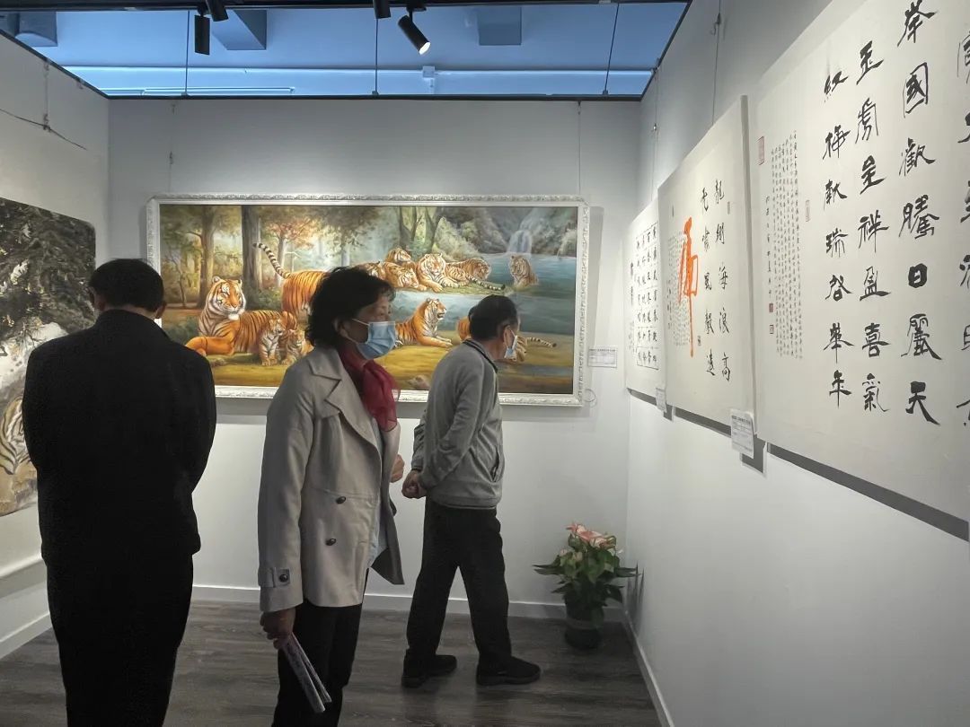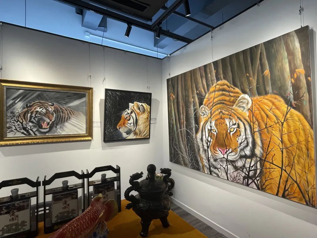 10月11日下午,“上海首届虎文化艺术展”在文定路画家街汇弘楼开幕,来自全国各地的八位书画艺术家集中亮相,为观众带来了最新创作的虎文化作品。进入展厅,一幅神情威严的虎像正对着正门口,观众一进来就能从画中感受到传统油画带来的震撼。