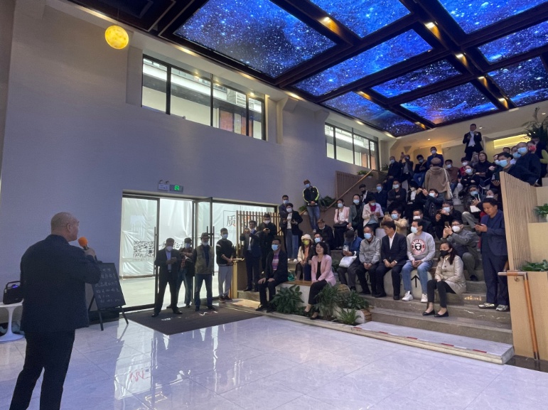 该幅作品出自国家一级美术师、上海东吴美术馆馆长吴一天之手,擅长画生肖画的他,这次特意带来了在疫情期间创作出来的作品,现场还为大家讲解创作心得。“在这幅画中,我以油画为主,但也融入了中国画的特色,比如中国画的线条、构图和手法。希望能通过虎像驱逐阴霾,迎接美好的日子。”