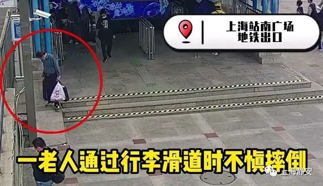 公共视频显示,10月14日下午,翟老伯乘坐地铁一号线来到上海火车站,准备回马鞍山老家,当他从地铁口出站时,将行李箱放在了楼梯旁的行李滑道处滑行,结果因为携带行李较多,整个人被带倒在地。