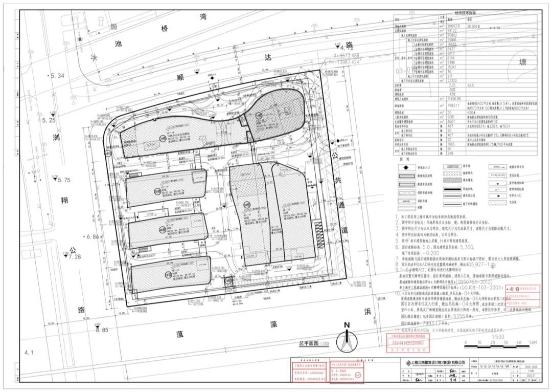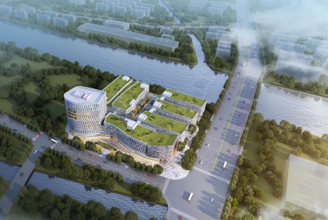 项目东至地块边界,南至蕴藻浜,西至浏翔公路,北至顺达路,拟建总建筑面积84122平方米,共6幢大楼,包含公司总部及智慧水务孵化基地。