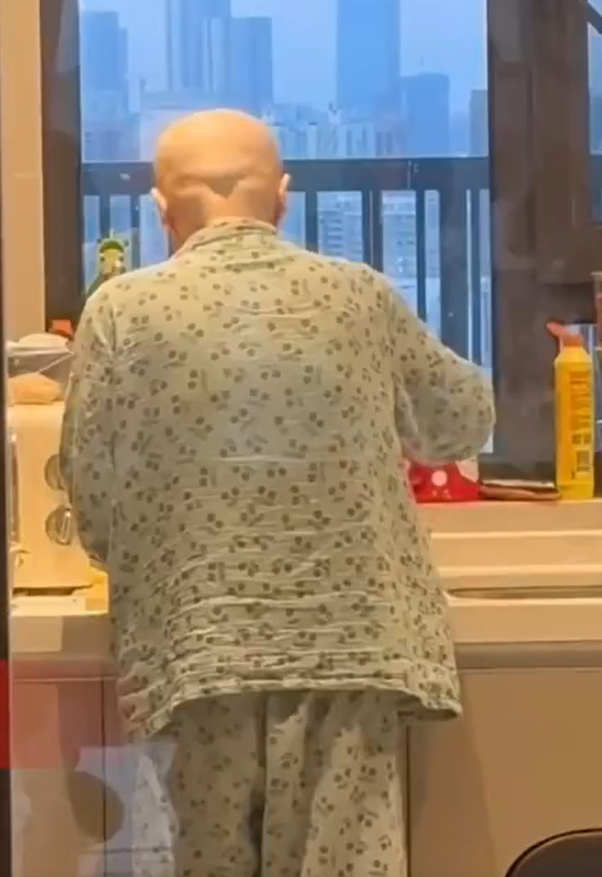 视频内容显示,由于化疗,这位妈妈的背影显得十分憔悴。她穿着单薄的睡衣,瘦弱的身躯仿佛随时就要倒下,但她依然坚持在厨房里忙碌着,认真地为儿子做好这顿饭。