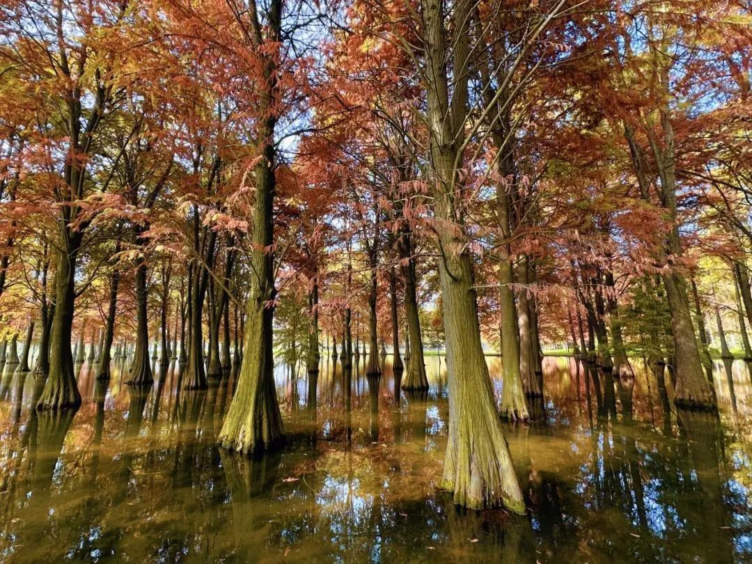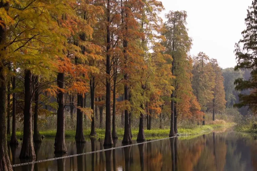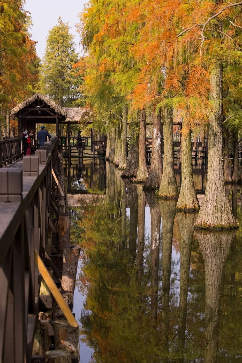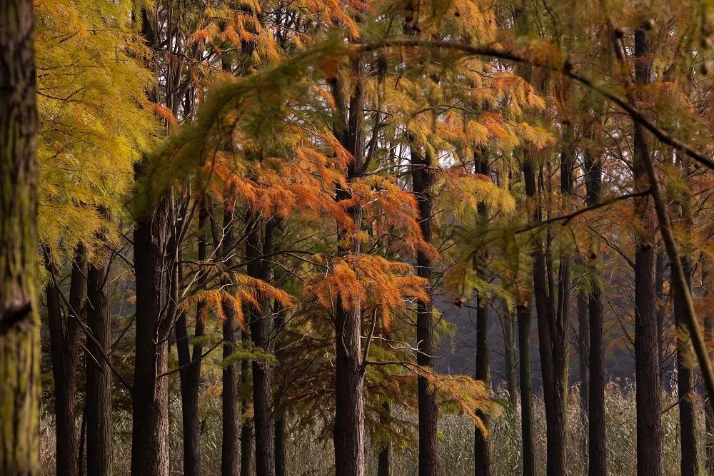 立冬已过,小寒将至。近期一次次的降温提醒着市民游客珍惜秋日美景。位于青西郊野公园的水上森林已经呈现出深红金黄浅绿的缤纷色彩,犹如一幅大自然描绘的天然油画。