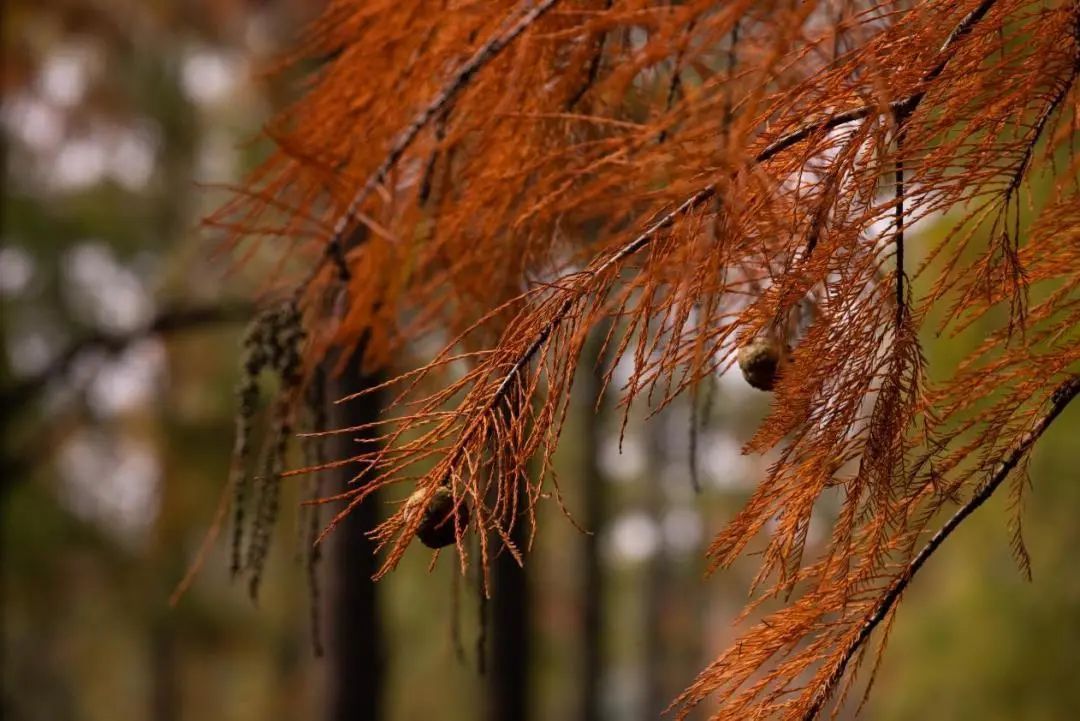 自入秋以来,绿色的水杉林陆续变色,介于枫叶的红色和银杏的黄色之间的颜色,不耀眼,不张扬。