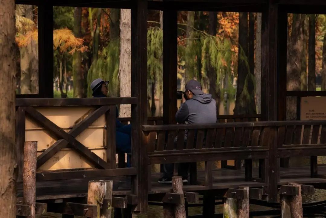 每年的11下旬至12月上旬,青西郊野公园进入红叶季。午后时分,阳光穿过树林在湖面上形成斑驳的树影,光影交错之间,仿佛让人置身于颇有秋季氛围感的油画之中。