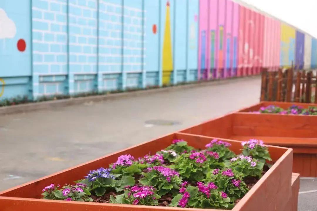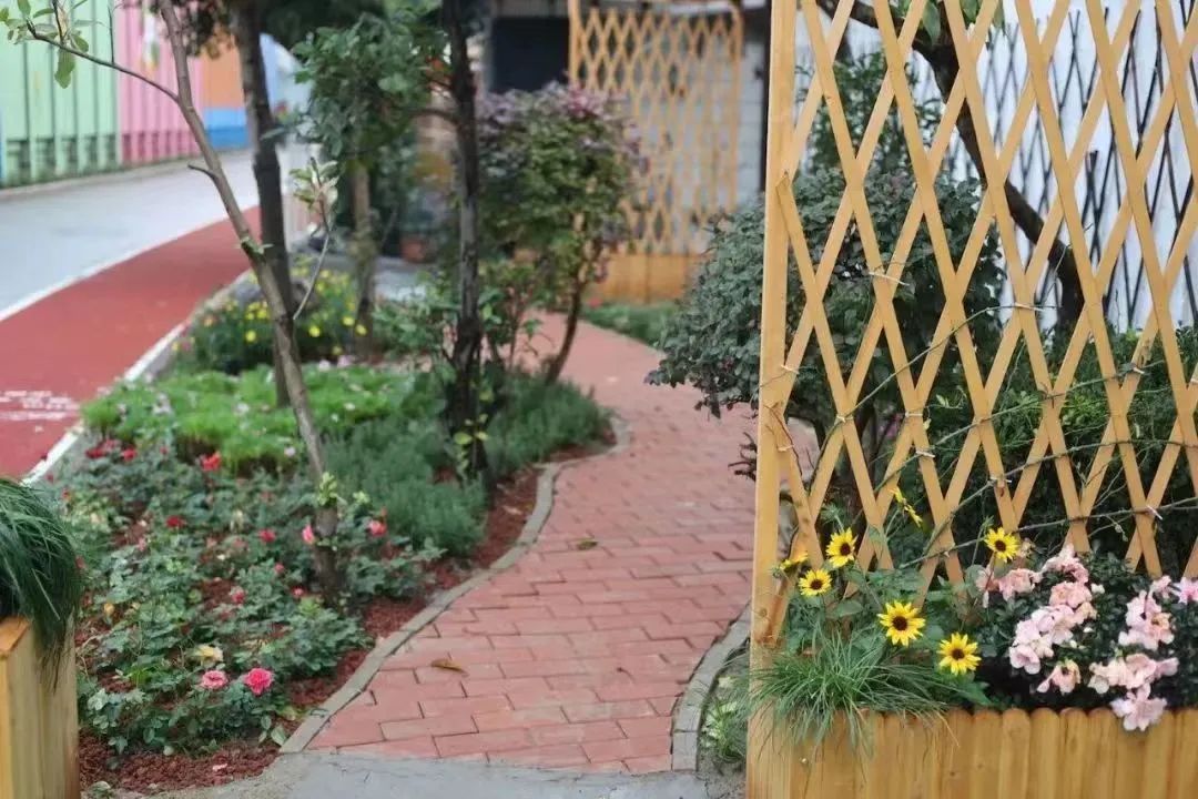 ④欣赏鲜花盛开:健身步道旁种植有玛格丽特、太阳花、矾根、玉簪 、狐尾天门冬、狼尾草、女贞、香根草、杜鹃、吊兰等,生境花园内有蔬菜、花卉、昆虫的家,还有橘猫和黄鼬朋友。