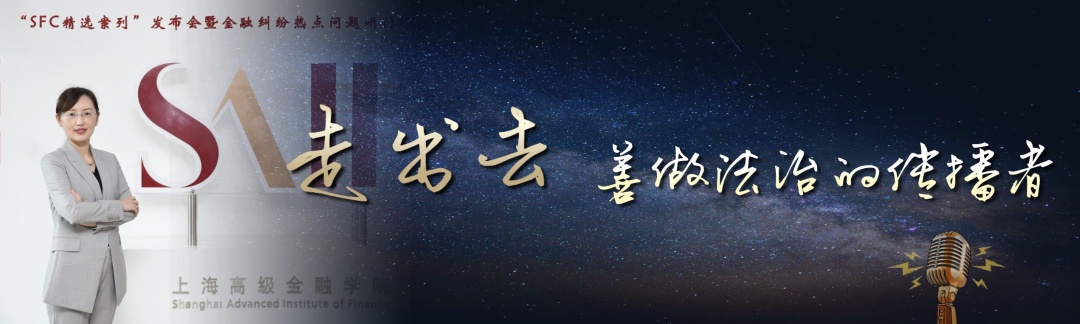 身为法律从业者,传播法律知识、弘扬法治精神是我们所承担的社会责任。由于所办案件受到较多社会关注,我也走出法院,成为一名法治传播者:录制央视《法治天下》节目,参加上海金融讲师团,为中证中小投资者服务中心全国调解员宣讲上海金融法院的示范判决机制,参与各种论坛研讨,在法院公众号讲授微课……用我的一点绵薄之力,向社会公众传播法治信念。