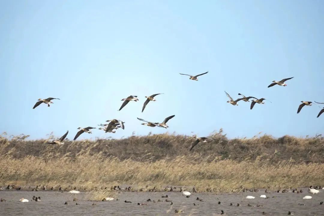 通过生态修复,如今东滩鸟类国家级自然保护区内的候鸟数量也有了显著提升,本次观鸟赛东滩赛区总共统计到122种鸟类,有鹤类、鹭类、雁鸭类等,其中卷羽鹈鹕被评委评定为本届观鸟赛的至尊鸟种。