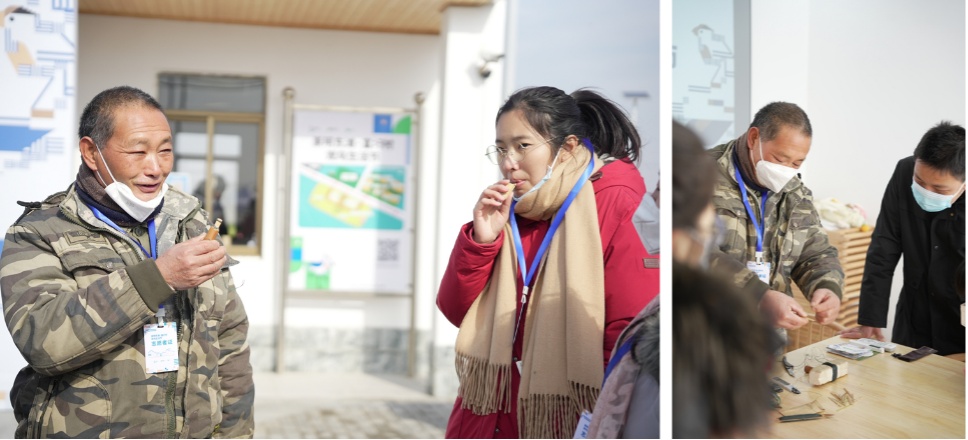 在东滩看完鸟,还可以到富圩村自然中心的生活集市上,那里鸟哨传承人金伟国正在展示非遗鸟哨的制作工艺,并用鸟哨模仿候鸟的叫声。