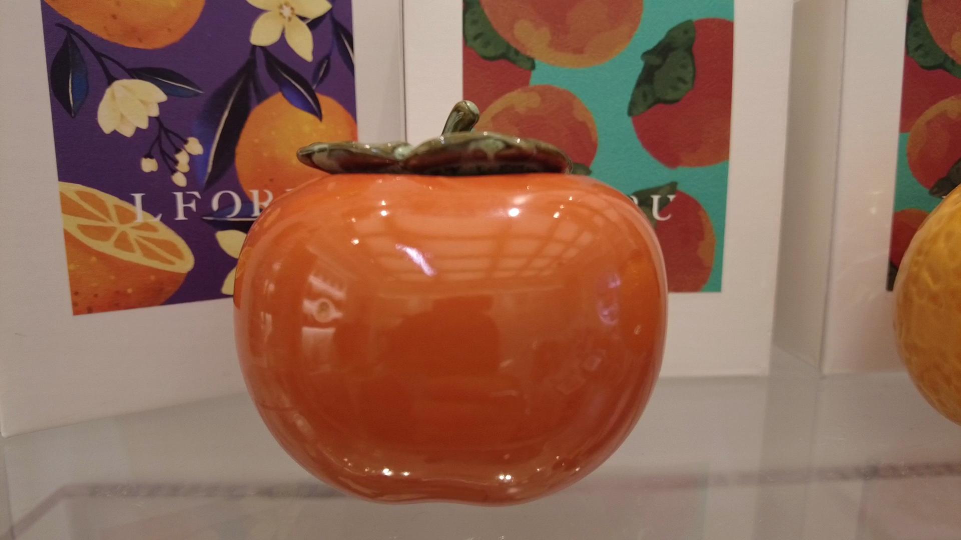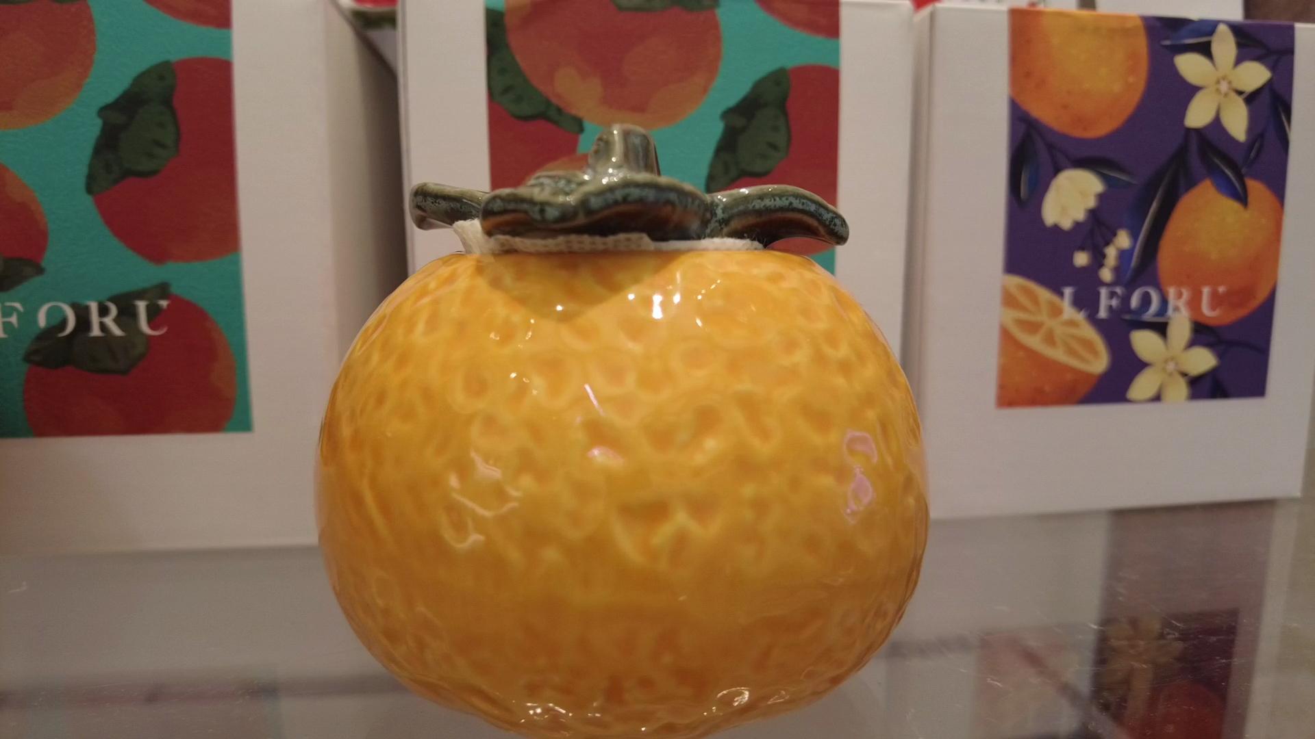 另一位听障花艺师、设计师蔡振君借助微弱的听力和唇语,可以“听懂”别人说话。他从事花艺空间设计、手造皮具、香薰礼品、包装设计服务等工作,拥有国际认证荷兰DFA花艺资格证书和国际认证美国CFD花艺资格证书。这次他带来的作品是柿子和橙子的蜡杯。邱琪文介绍,蔡振君靠自己努力和助听器帮助,学会了香薰制作。他所做的香薰,得到了大家的认可。像这个柿子作品,寓意事事如意。这个橙子作品,则象征前程似锦。