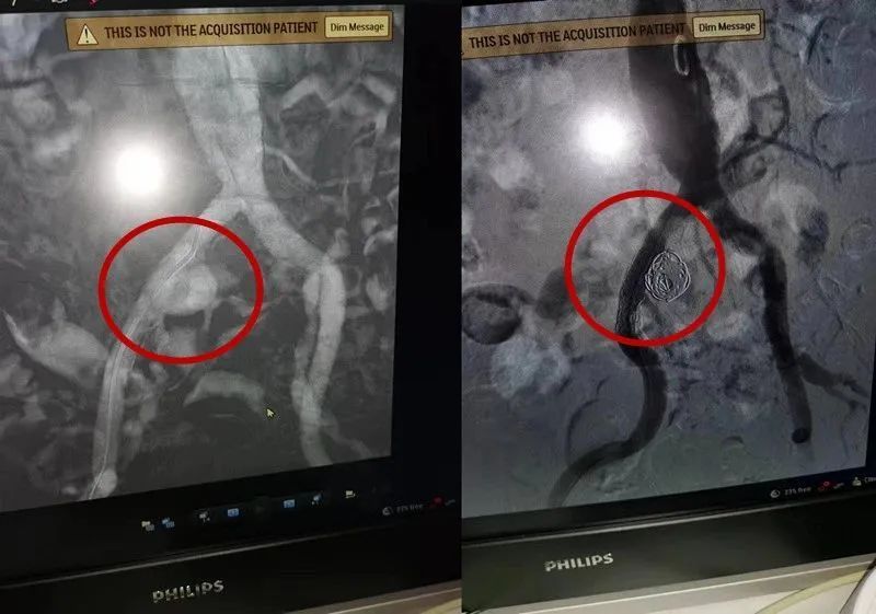 “在入院检查时,我们发现患者的盆腔里,右髂动脉有一个动脉瘤,直径近3cm,而且呈偏心性增大。”结合患者心功能不全,血压不稳等情况,经过进一步检查评估发现,在多种不利因素影响之下,可能导致这颗“不定时炸弹”随时“爆炸”(破裂),甚至危及生命。