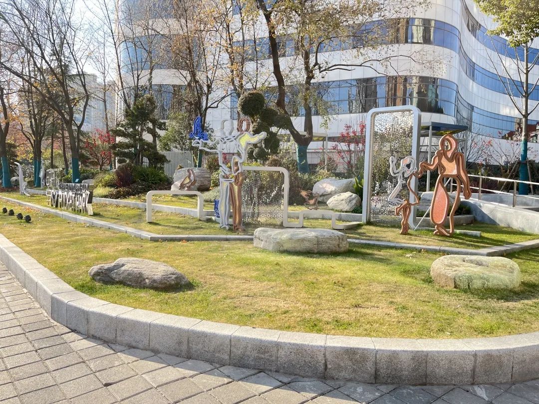 畅心园路大连路路口的街心花园内,动物雕塑与花卉绿植错落有致,与和平公园遥相呼应。