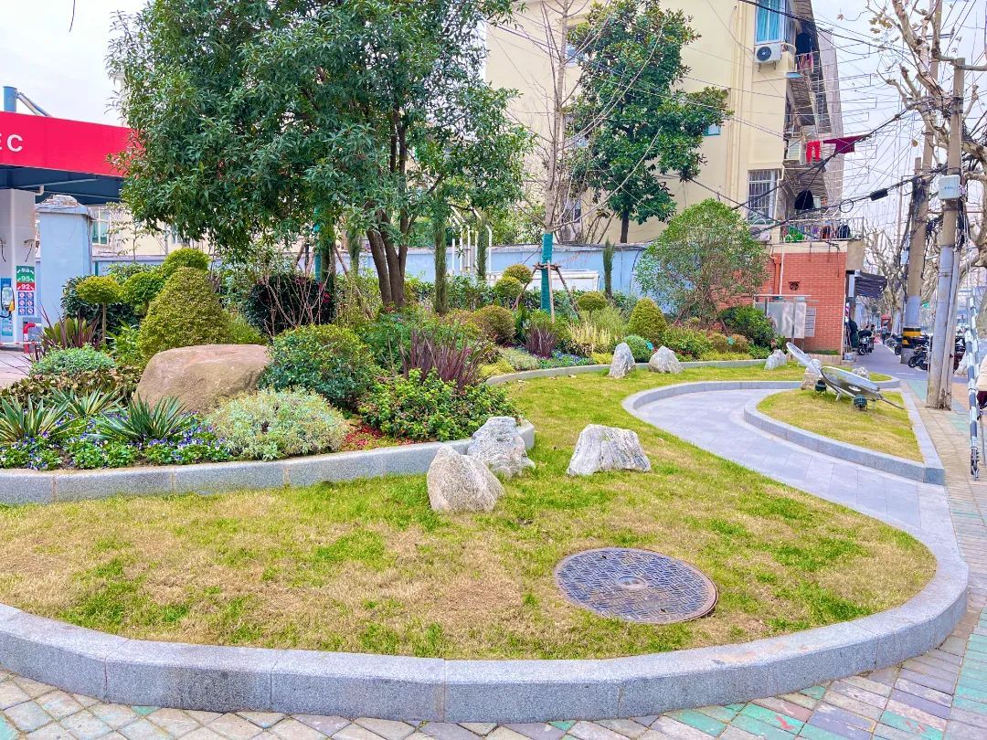 作为此次美丽街区改造的重要节点,对和平公园附近的3个街边绿地进行了整体优化提升。