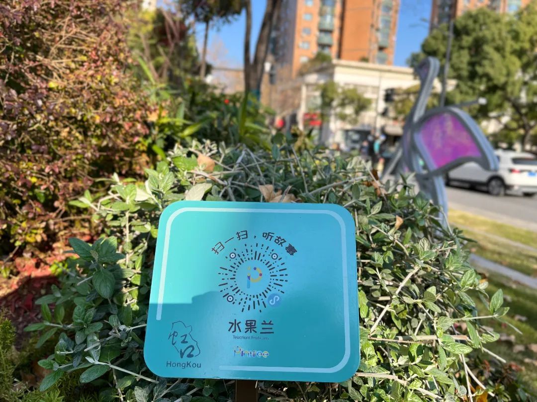 街边的繁花绿树这么美,这些花草树木都叫什么名字呢?不认识没关系,绿地内有不少植物扫码牌,用手机扫码便可了解植物属性、生长条件等知识,还有专为低龄儿童设计的绘本和有声故事,满足各年龄层次对植物科普知识的渴望。