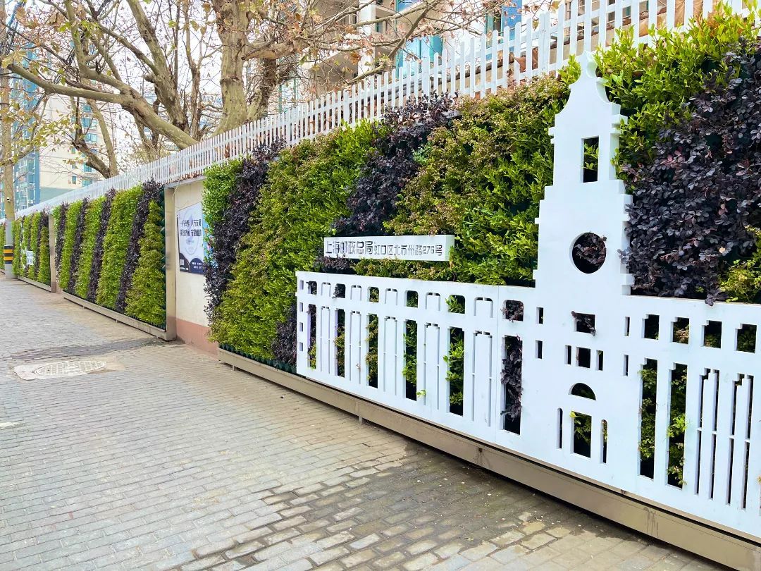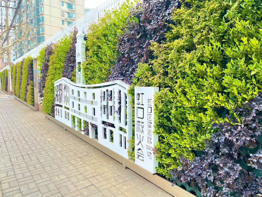 同样有着浓厚的人文气息,还有新港路的生态围墙。在郁郁葱葱的绿植间,穿插布置了上海大厦、景林堂、虹口救火会、上海邮政博物馆等虹口著名建筑的剪影,行走于此,与历史擦身而过,感受城市的文化魅力。