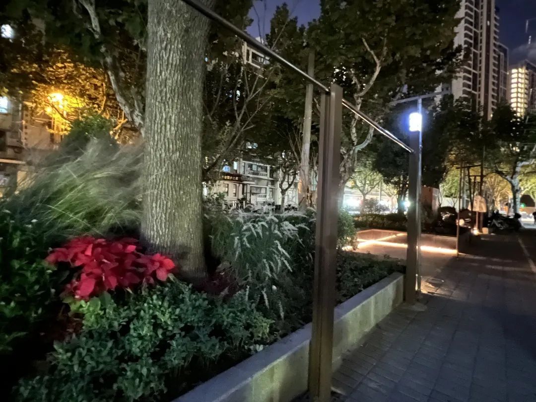 新港路邻近幼儿园和养老院,此次美丽街区改造立足于“老幼友好”,在设计中注入更多人情味儿,通过立体绿化、墙面趣味展示框、夜间感应灯箱等,形成日夜有关护、四季有景致的丰富边界空间。设计公司项目负责人杨天宇介绍: