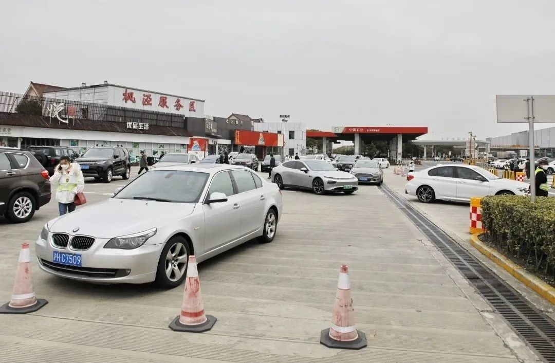 俯瞰G60沪昆高速,出沪返乡的车流较往日明显增多,但排队等候的现象并未出现。在枫泾服务区内,不少车主也表示,今年春节出游返乡的路况较好,沿途并不拥堵。