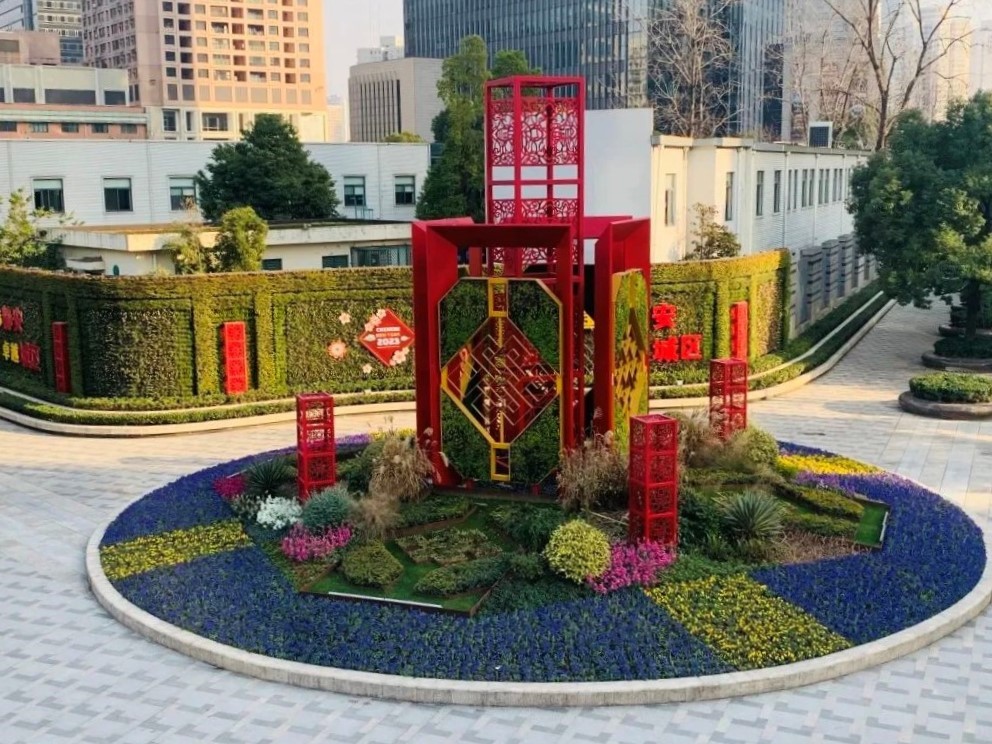 区绿化市容局在全区各主题景点、特色绿化道路、口袋公园和花坛花境等绿化设施,结合各个区域特色设计布置了一系列新春主题装饰,营造一篇欢腾热闹的新年氛围。