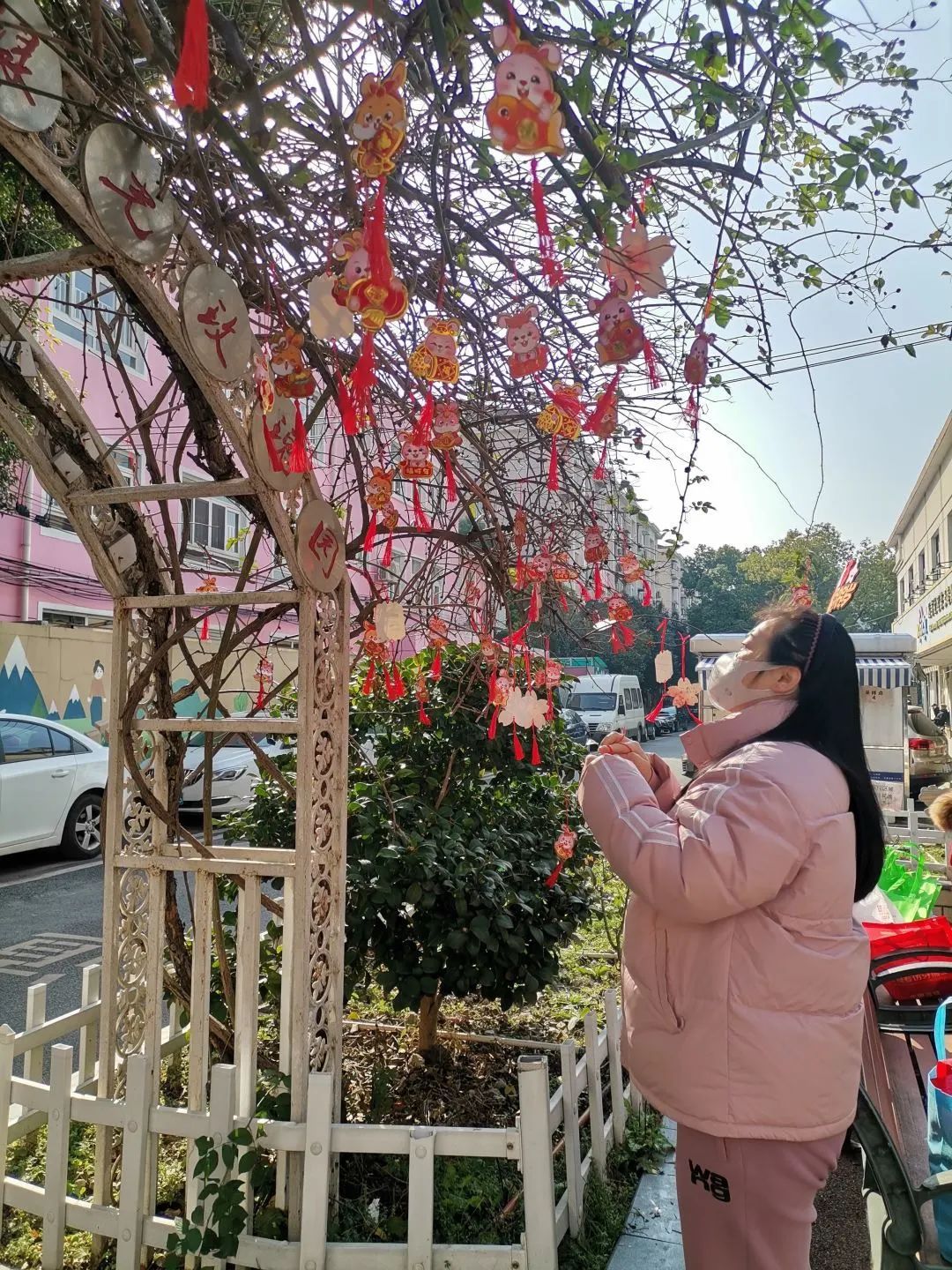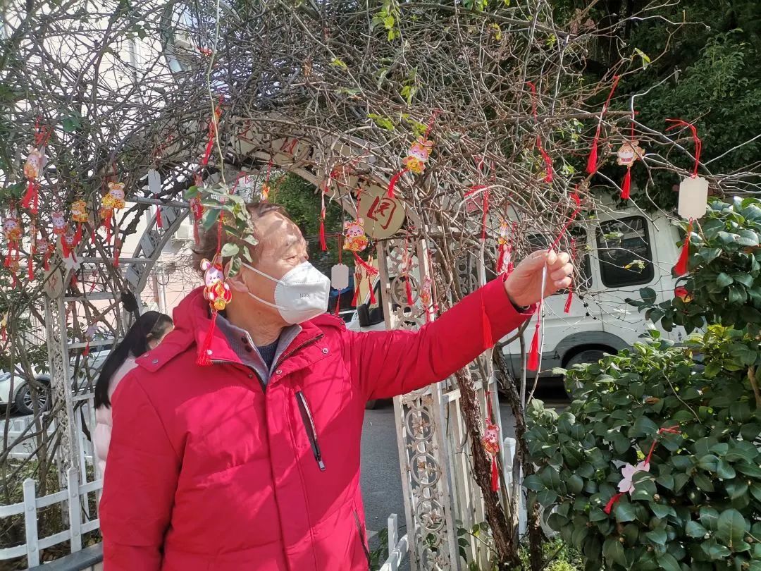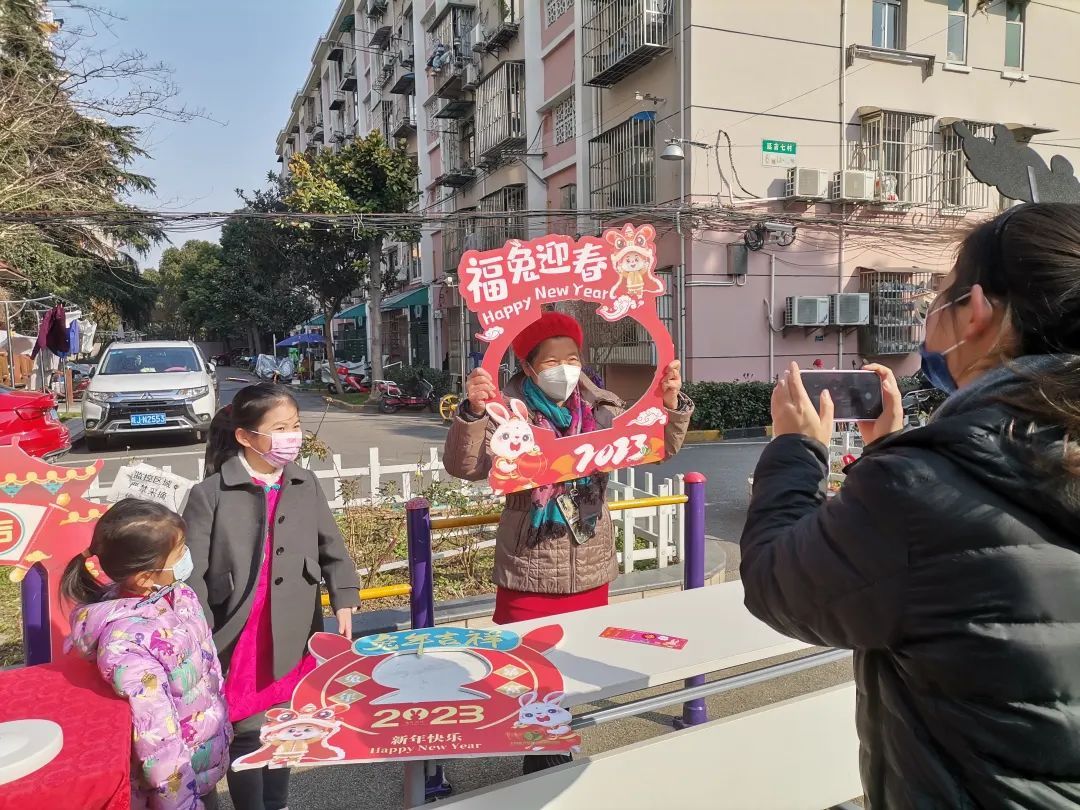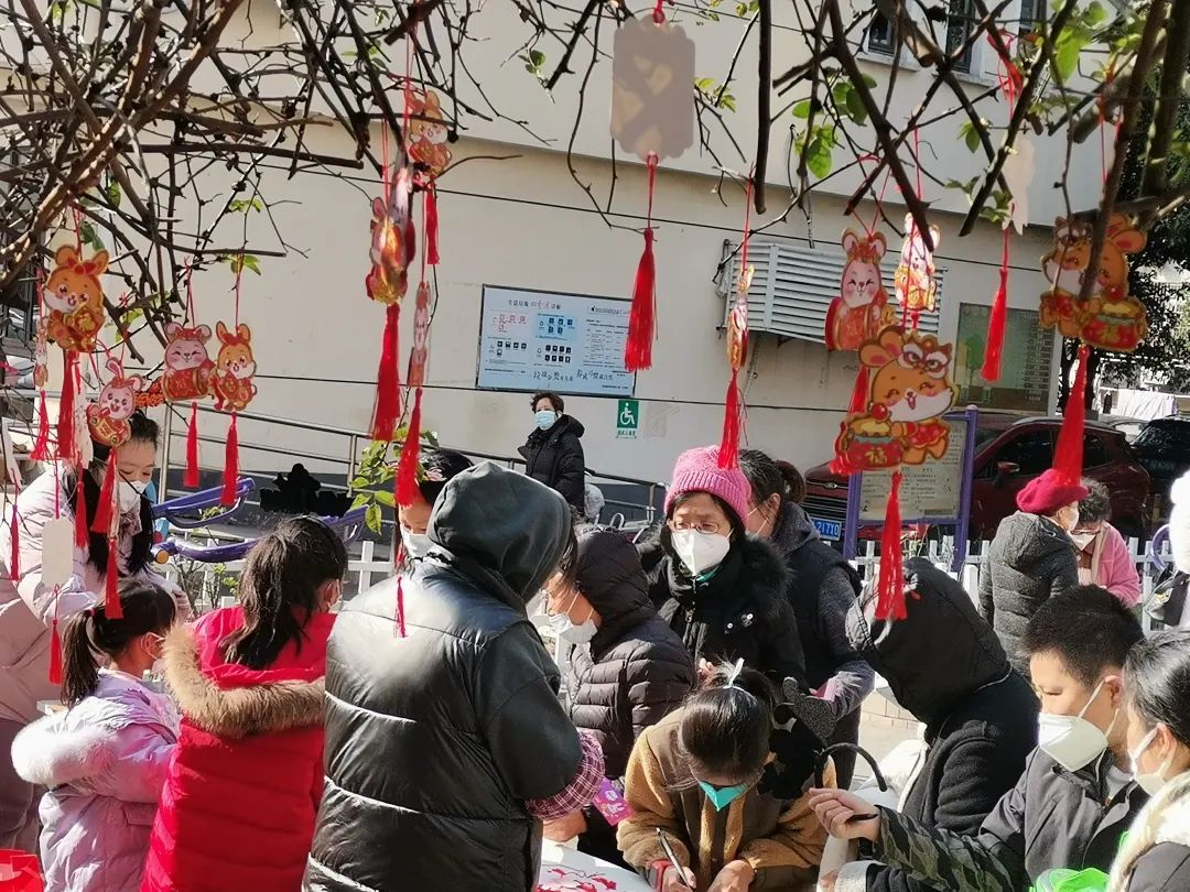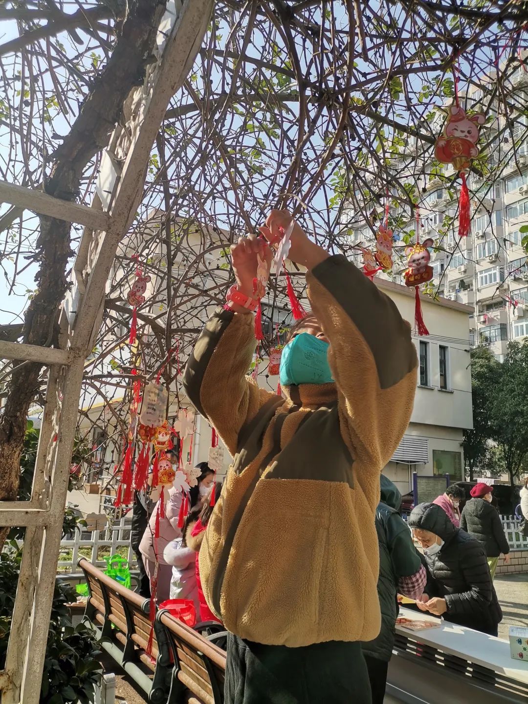 负责摊位游戏的小“玉兔”,有的协助居民参与视频拍摄,有的给完成任务的居民贴“福“字标记,有的帮助居民悬挂心愿卡......在小“玉兔”们的引导下,居民们感受传统年味。