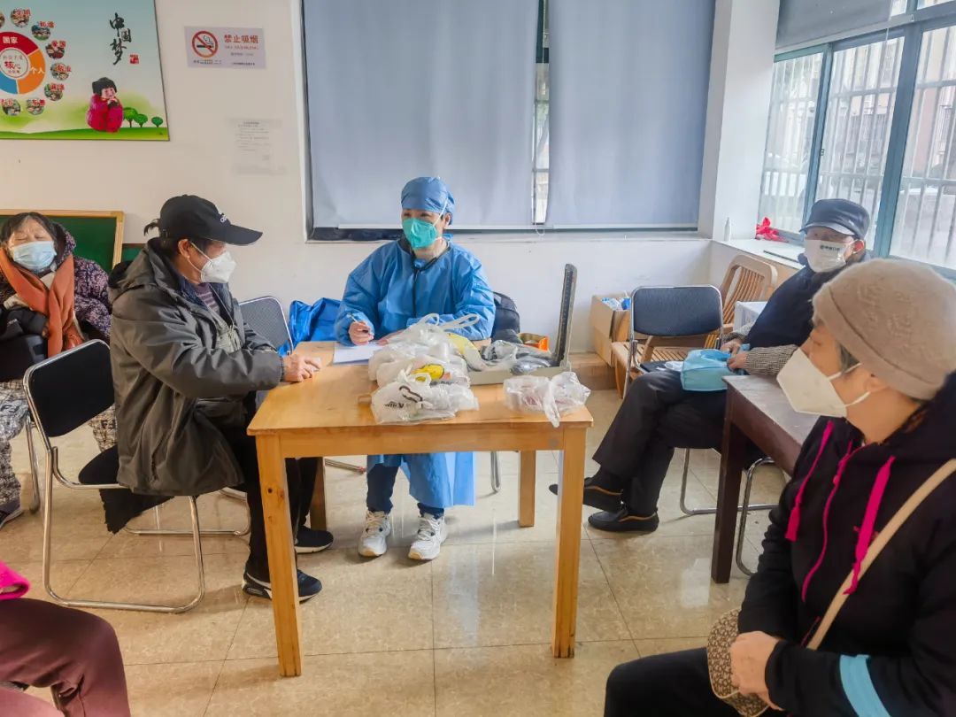 周美萍介绍,为了尽早对脆弱人群进行保护,前期社区医院和居委会对社区高龄老人进行排摸,“根据基础情况会分为红黄绿3个级别,并对重点人群随访,避免发展成重症。如果有感染情况,我们能够第一时间给予他们治疗建议。”