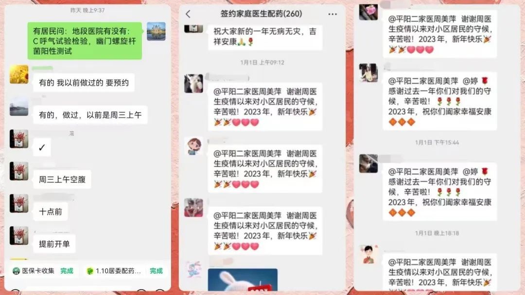 对于一些常用但短期内供不应求的非处方药,居民们在配药群内互帮互助,将自己家中多余药品提供给有需要的人。半夜里,居民在群里发布求助消息,居委会和周美萍看到后第一时间给予帮助,“你别担心,我们来想办法”……浓浓的邻里情在线上传递。