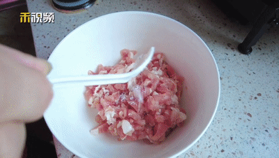 2.猪肉末里加盐、十三香等调味料,再加入少许淀粉搅拌均匀