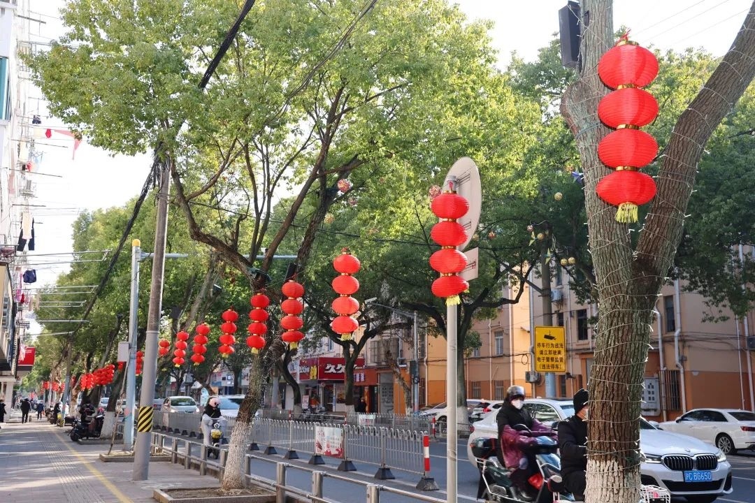 一串串红灯笼、一处处新年小景、一个个崭新的花箱……漫步在金山区朱泾镇金龙新街的街头,处处洋溢着节日的气氛,浓浓的年味扑面而来。