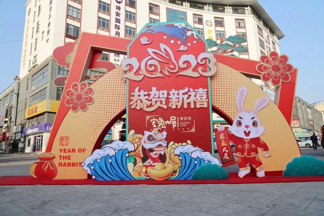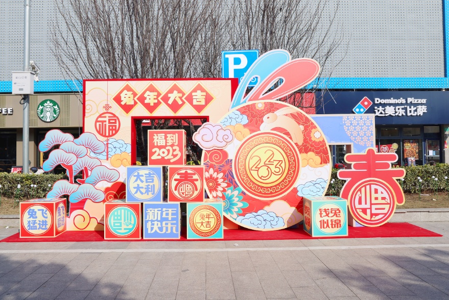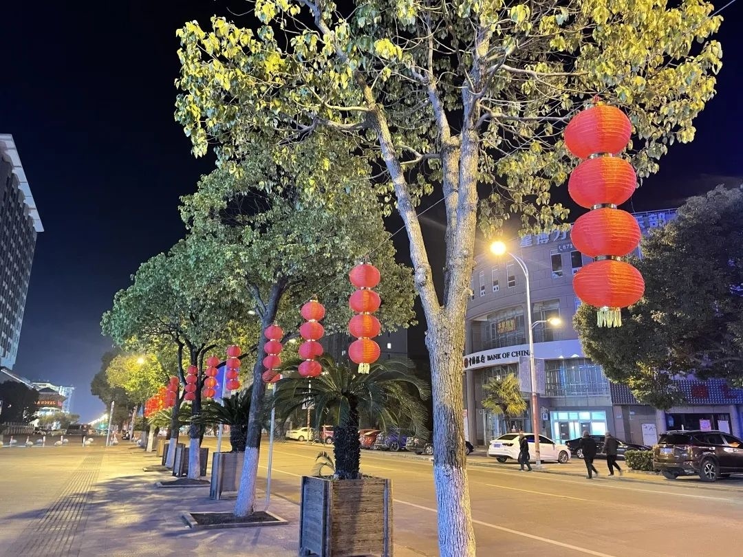 此外,朱泾镇宣传文明办还在万安街、人民路、新农浦银路等路段挂起了各式各样的红灯笼;在城南市场、港翔广场、紫金广场、东林寺广场等地新增了迎春小景。浓郁的年味弥漫在大街小巷,也让春节中的朱泾更加靓丽。