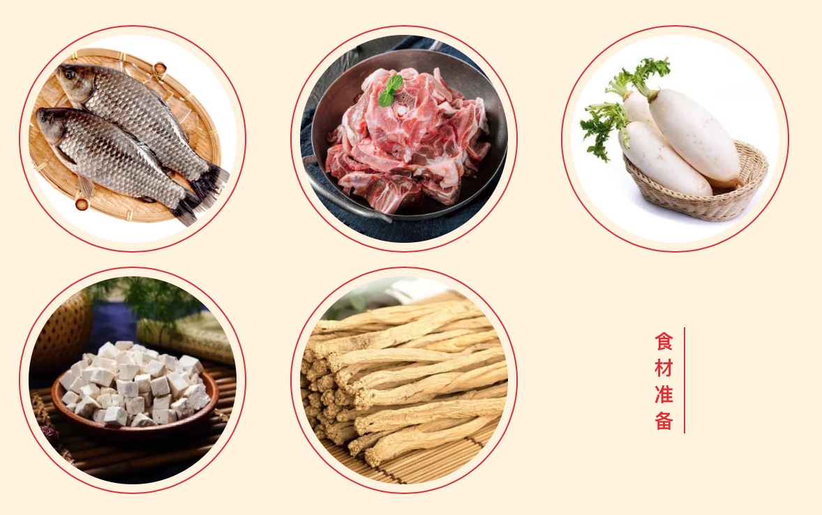 鲫鱼300g、羊蝎子500g、白萝卜150g