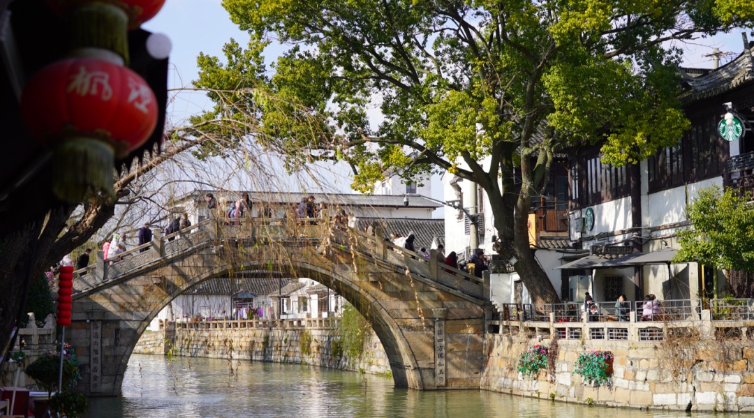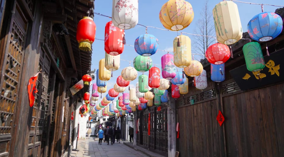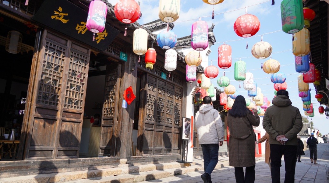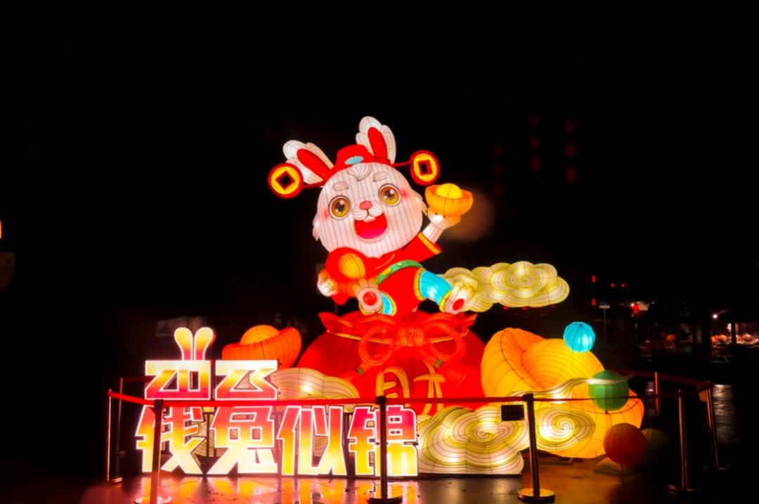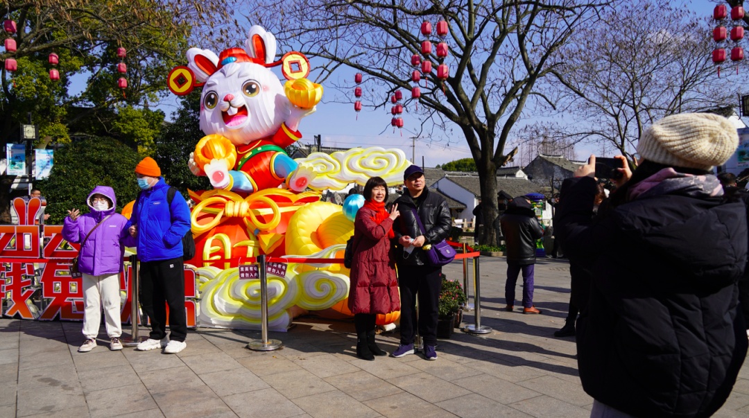 伴随着非遗市集,“福兔迎春、枫潮镇兴”一年一度的古镇灯彩展如约而至。从南镇进入旅游景区,“兔年吉祥”首先映入眼帘,老品牌文化街区“盛装”迎新春,处处张灯结彩。在三桥广场,大型卡通兔子灯彩成为了众多游客打卡的首选地。当夜幕降临,华灯初上时,各色灯笼格外引人注目,把“年味儿”的喜庆浓度加到满格。据统计,截止2023年春节假期1月24日16:30,枫泾旅游区当日累计接待游客1.59万人次,同比增长64%。
